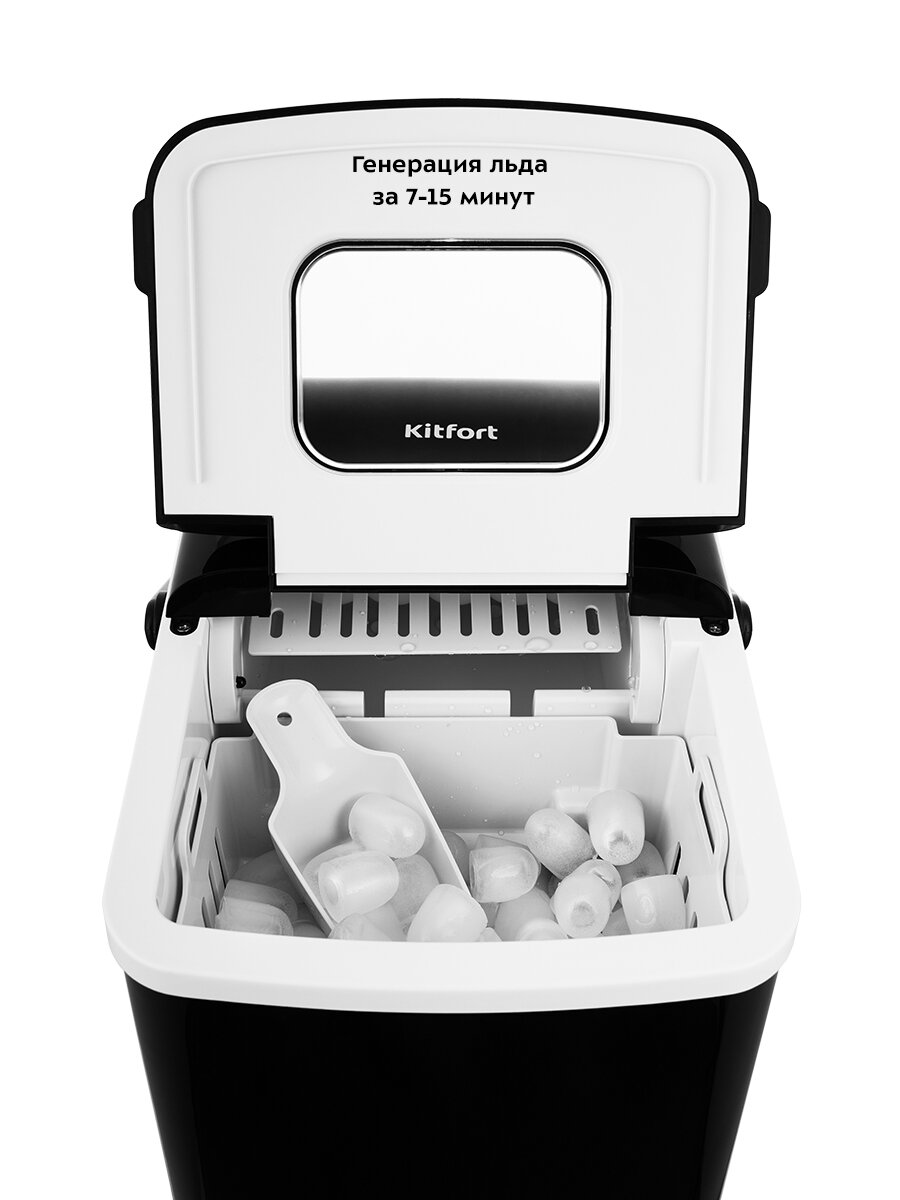 Льдогенератор Kitfort КТ-1806 генерирует до 12 кг льда за сутки - достаточно для обслуживания домашних вечеринок или профессионального использования в мини-баре. Цикл полной заморозки занимает 6-8 минут благодаря динамической системе охлаждения TurboFreeze. Устойчивые регулируемые ножки позволяют установить технику даже на неровных поверхностях.