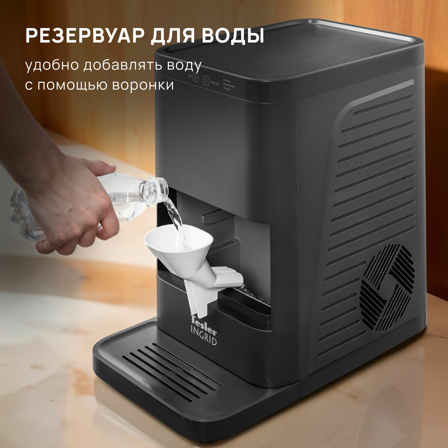 Льдогенератор Tesler ICM-0001 создан для профессионального использования с производительностью 12 кг льда ежесуточно. Модель с габаритами 225x294 миллиметра идеально размещается на барной стойке благодаря настольному формату установки. Система динамического охлаждения обеспечивает бесперебойную работу даже при интенсивной эксплуатации. Встроенный контейнер на 1.3 литра сохраняет температуру льда до -5°C, предотвращая преждевременное таяние.