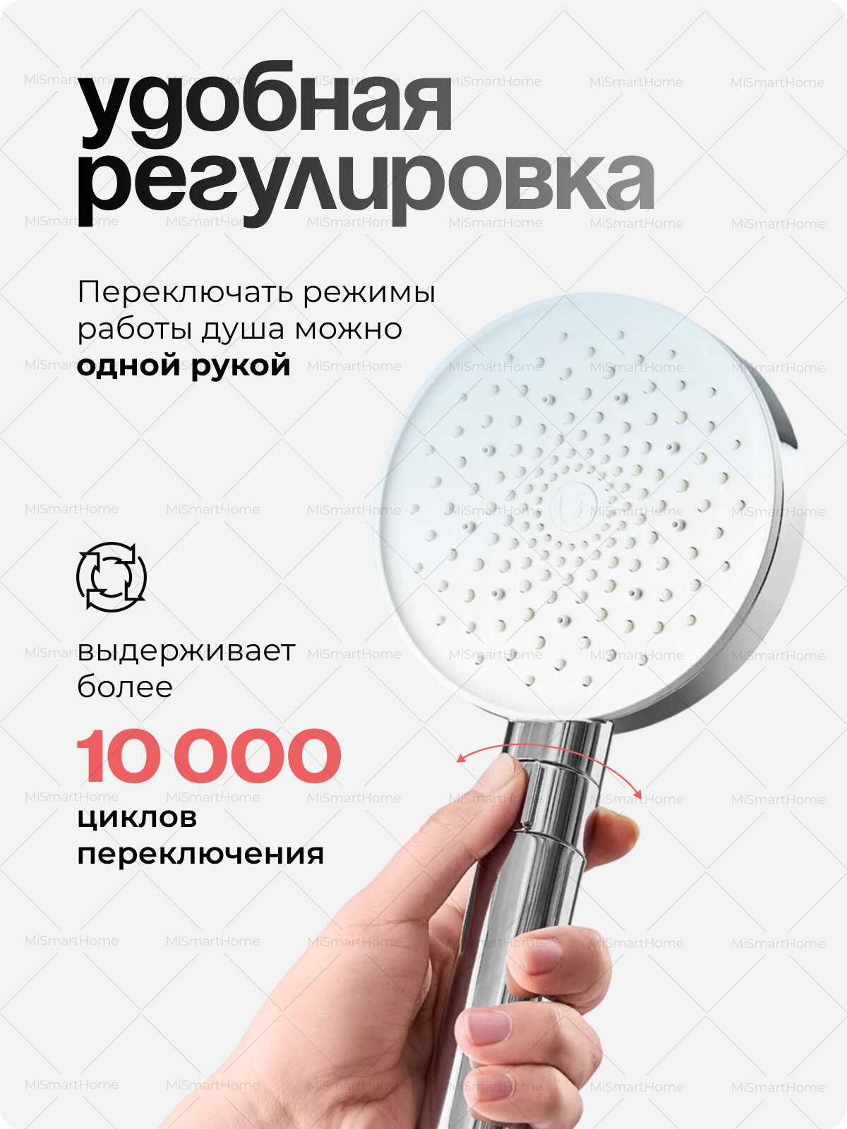 - Совместимость: работает с любыми смесителями стандарта G1/2 и G3/4 через переходники из комплекта
