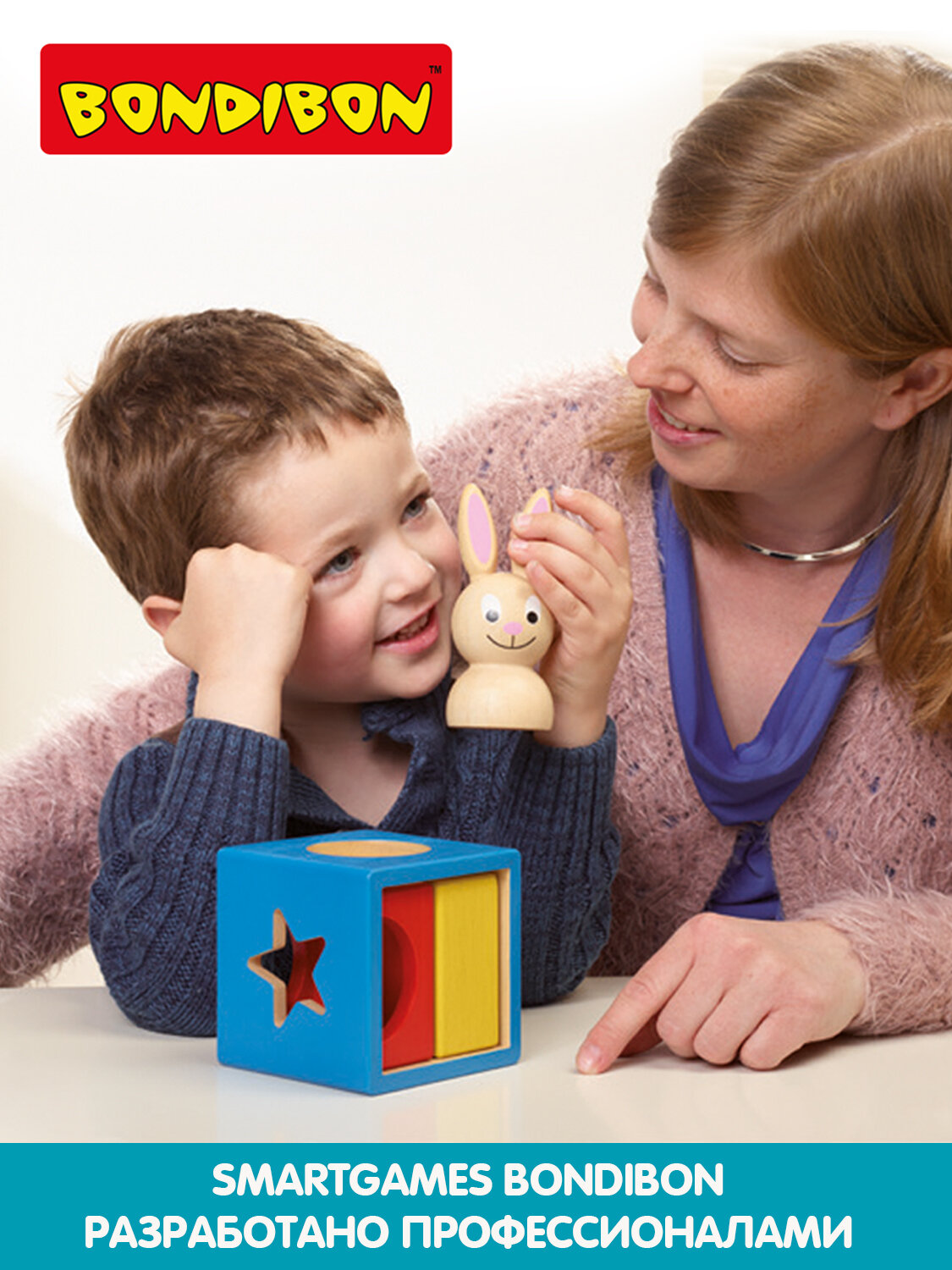 Логическая головоломка "Застенчивый Кролик" Bondibon создана для развития пространственного мышления у детей от 2 лет. В комплекте 60 заданий с прогрессией сложности — от простых конфигураций для новичков до многоуровневых комбинаций: