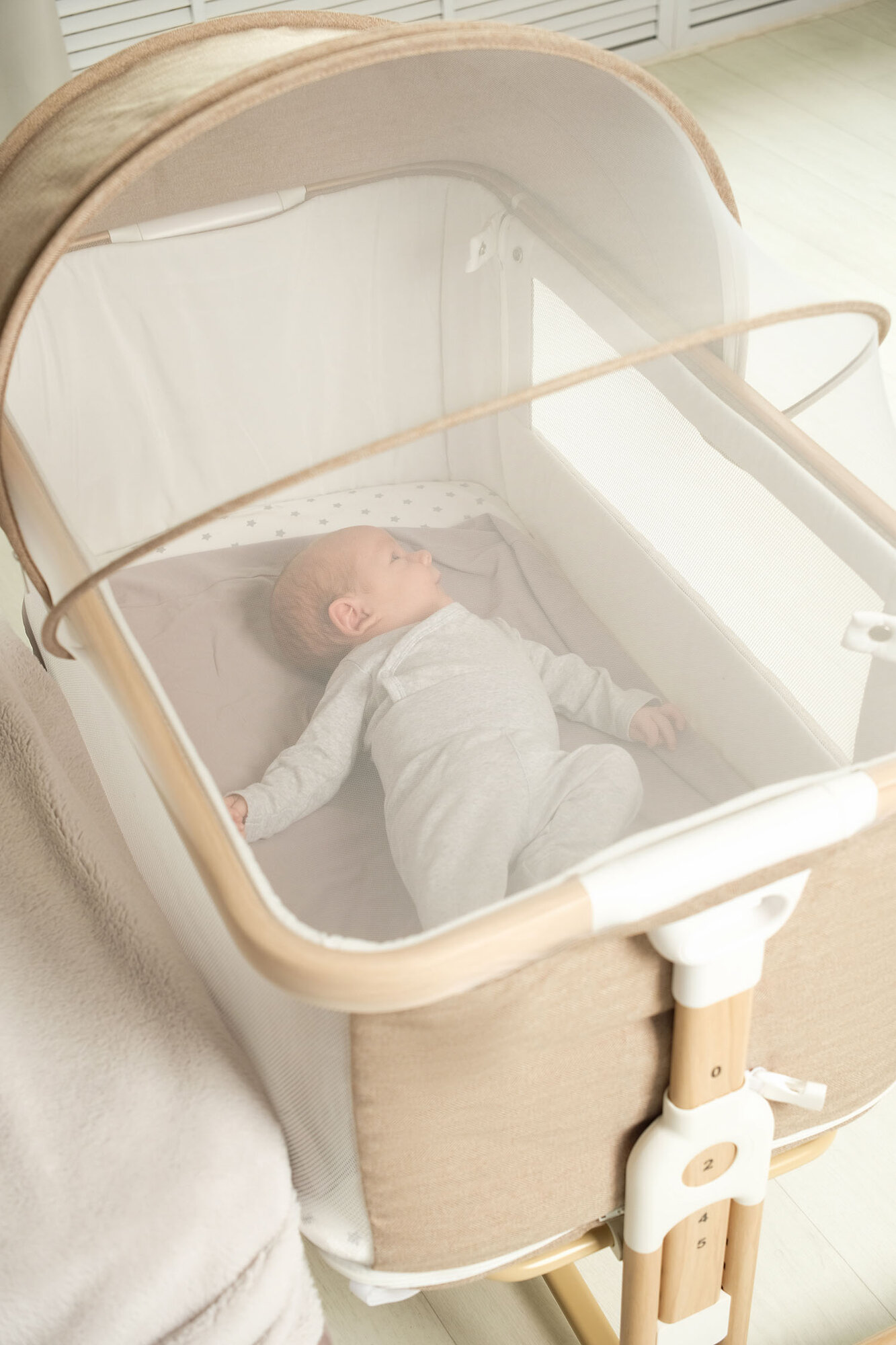 - Универсальное крепление к взрослой кровати с 5-уровневой регулировкой высоты (±7см)
