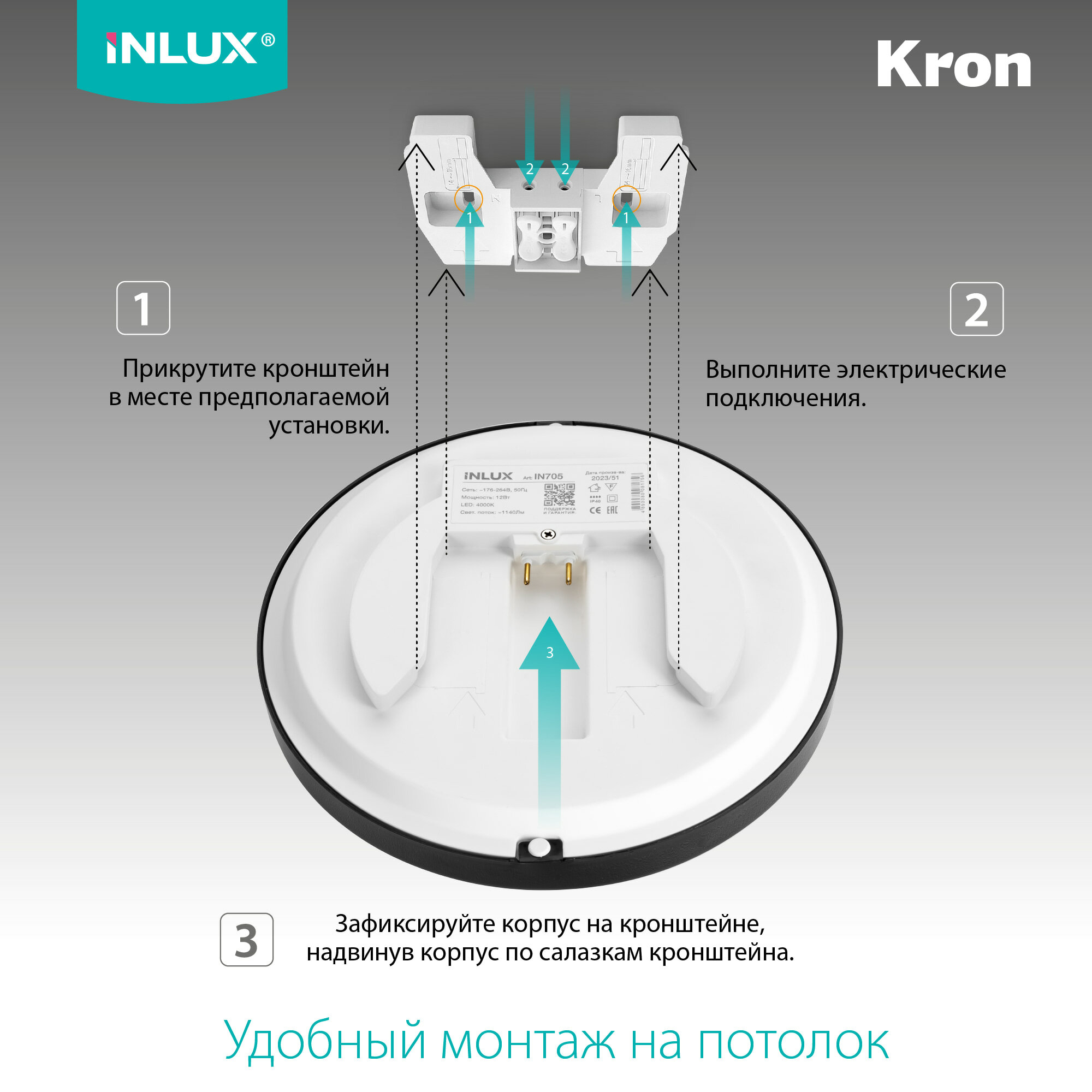 Светодиодная люстра KRON IN70511 крепится к потолку с помощью универсальной монтажной планки, совместимой с гипсокартонными, натяжными и бетонными поверхностями. Специалисты выделяют три ключевых преимущества монтажной системы: