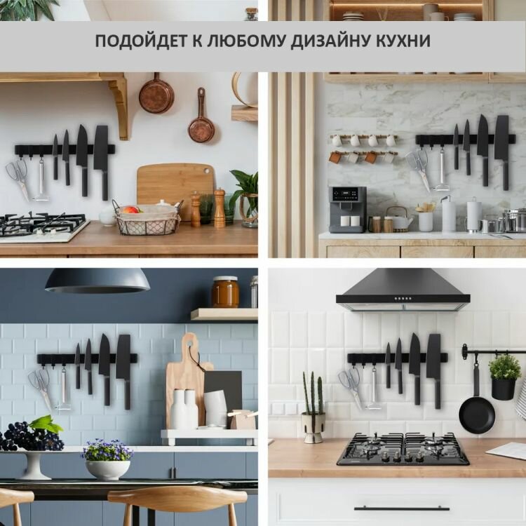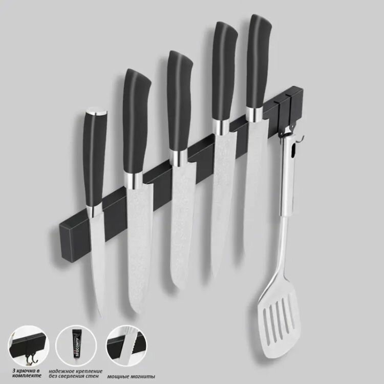 - Система магнитов NdFeB с силой сцепления 15 кг/м² удерживает даже профессиональные поварские ножи