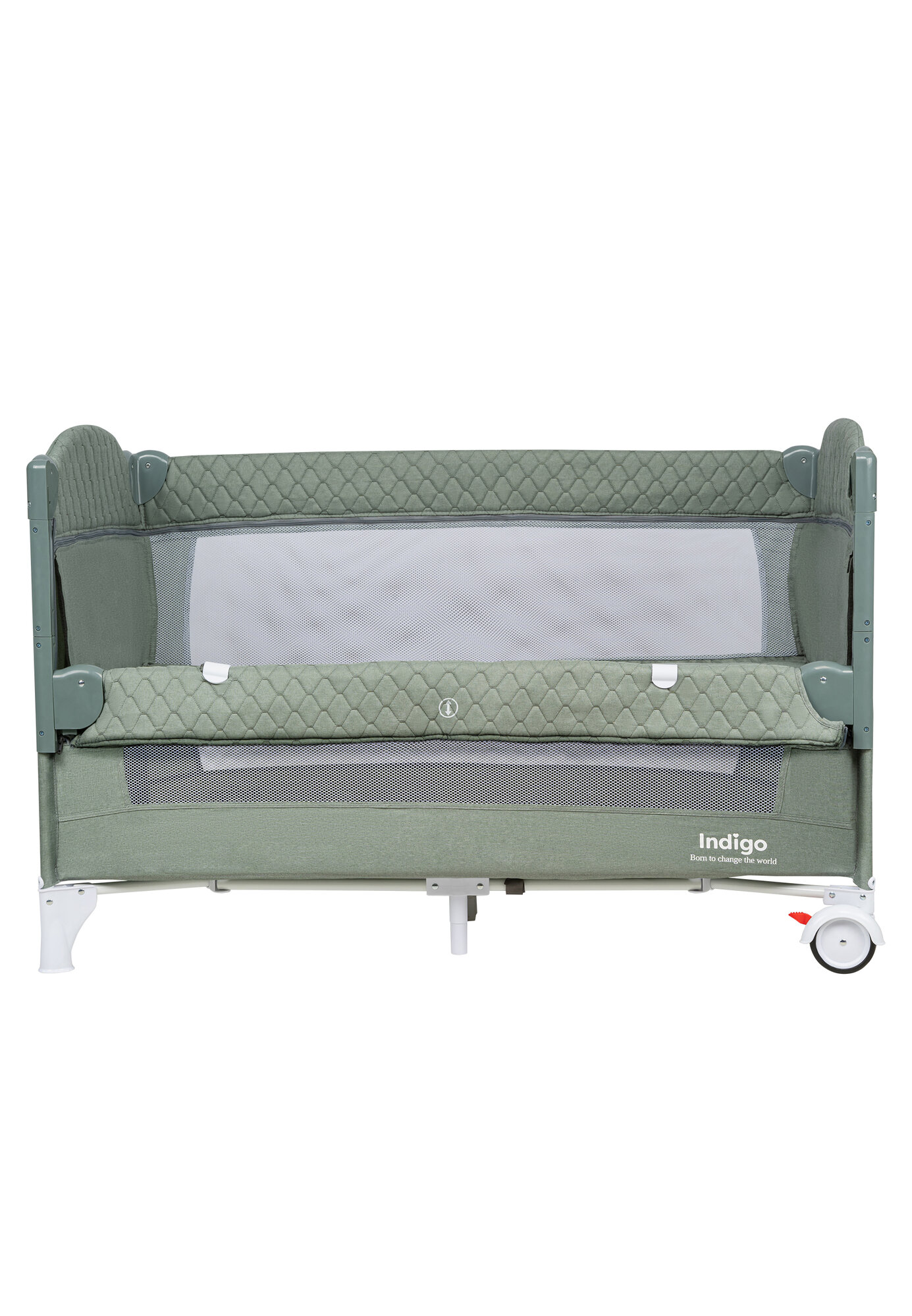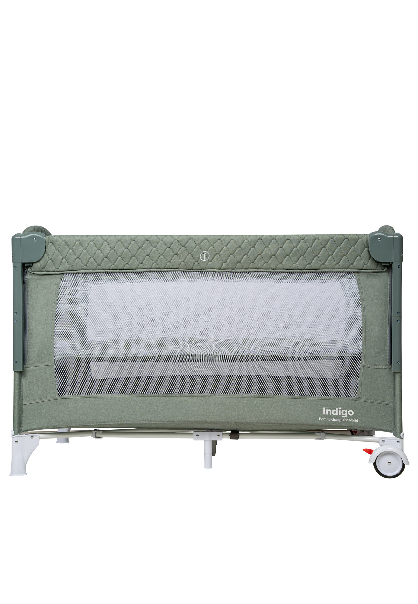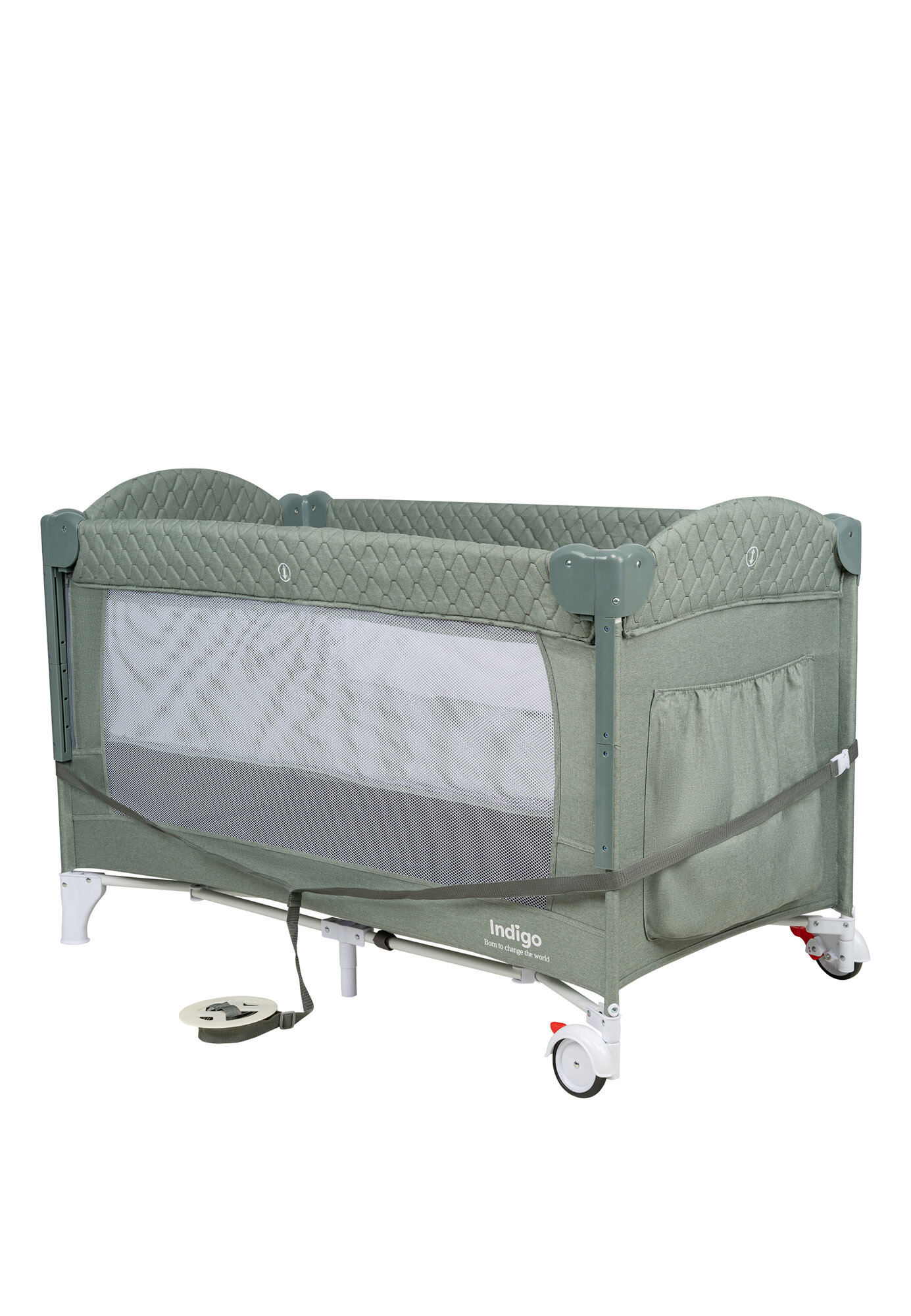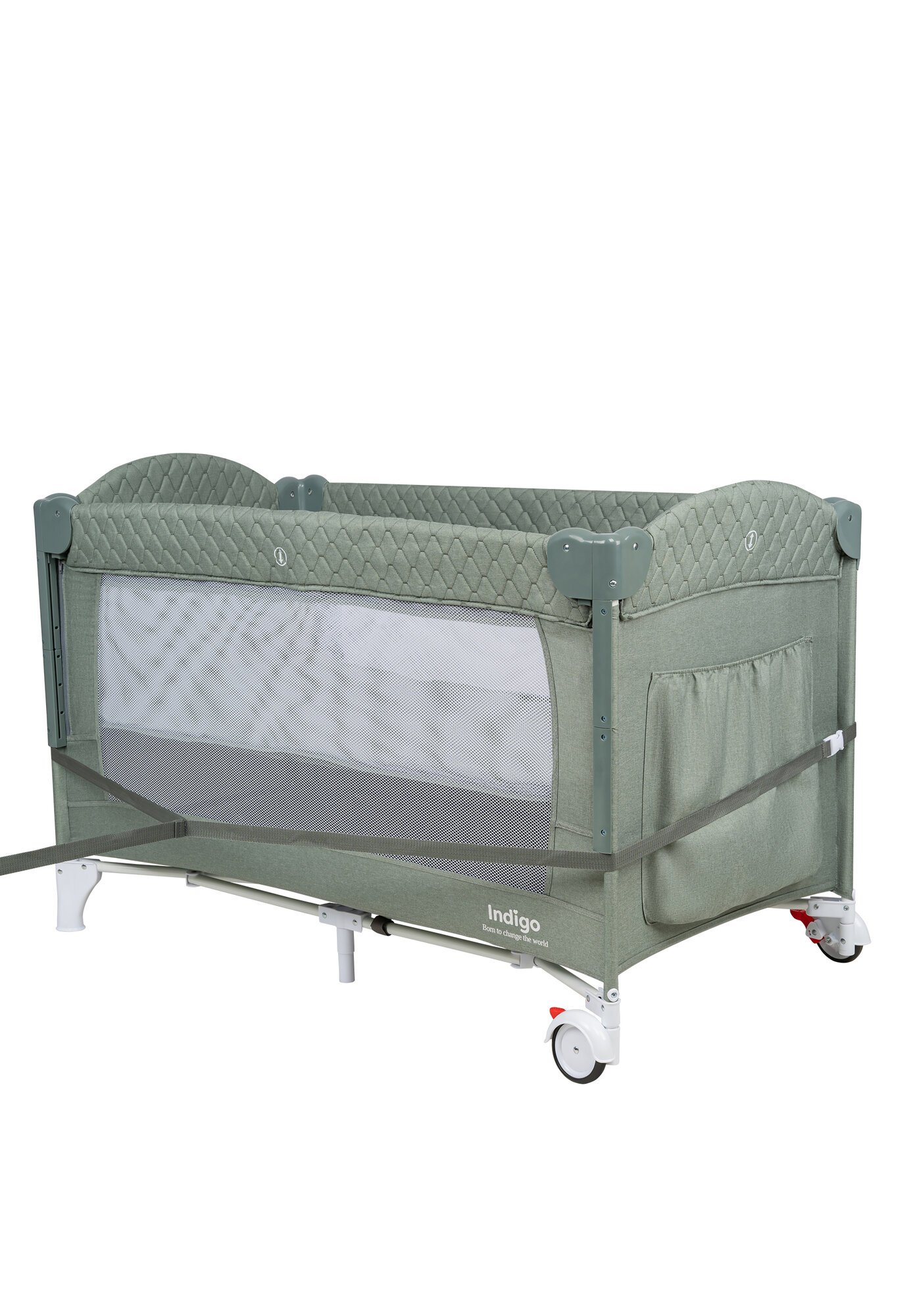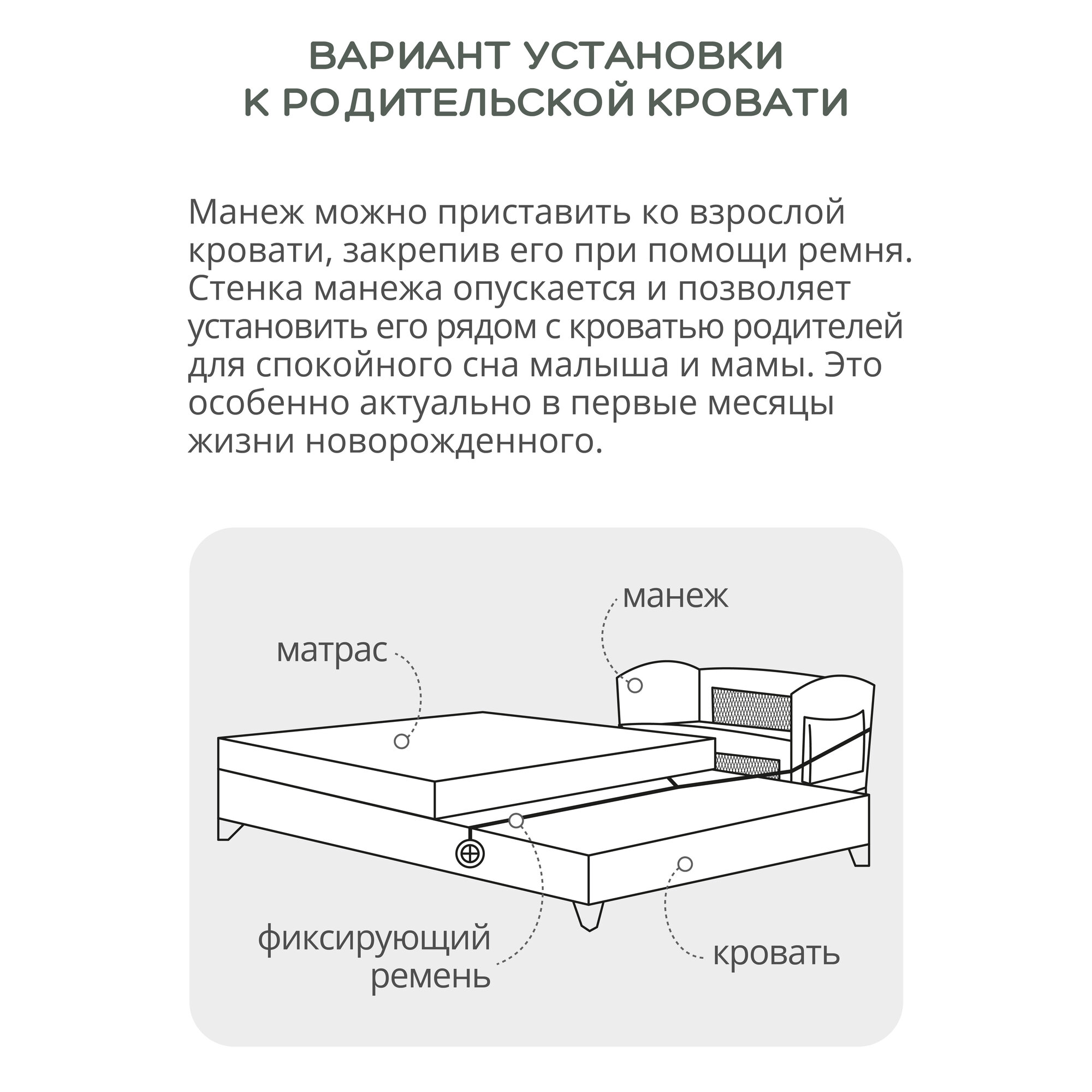 Ортопедический матрас с кокосовой койрой толщиной 5 см поддерживает позвоночник новорожденного. Антискользящие силиконовые накладки на ножках фиксируют манеж на кафеле и ламинате.