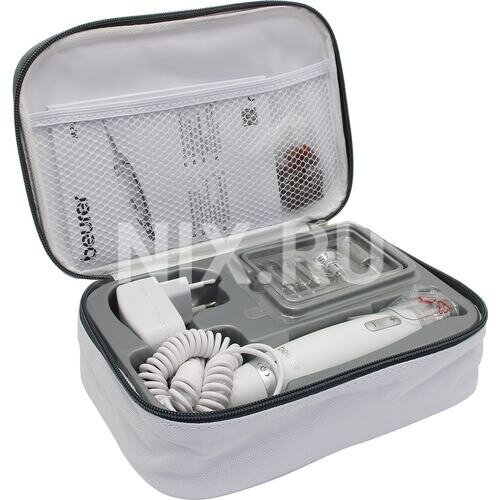 Система автоотключения срабатывает при перегрузке двигателя, увеличивая срок службы до 5 лет по данным тестов лаборатории Beurer. Комплектация включает: