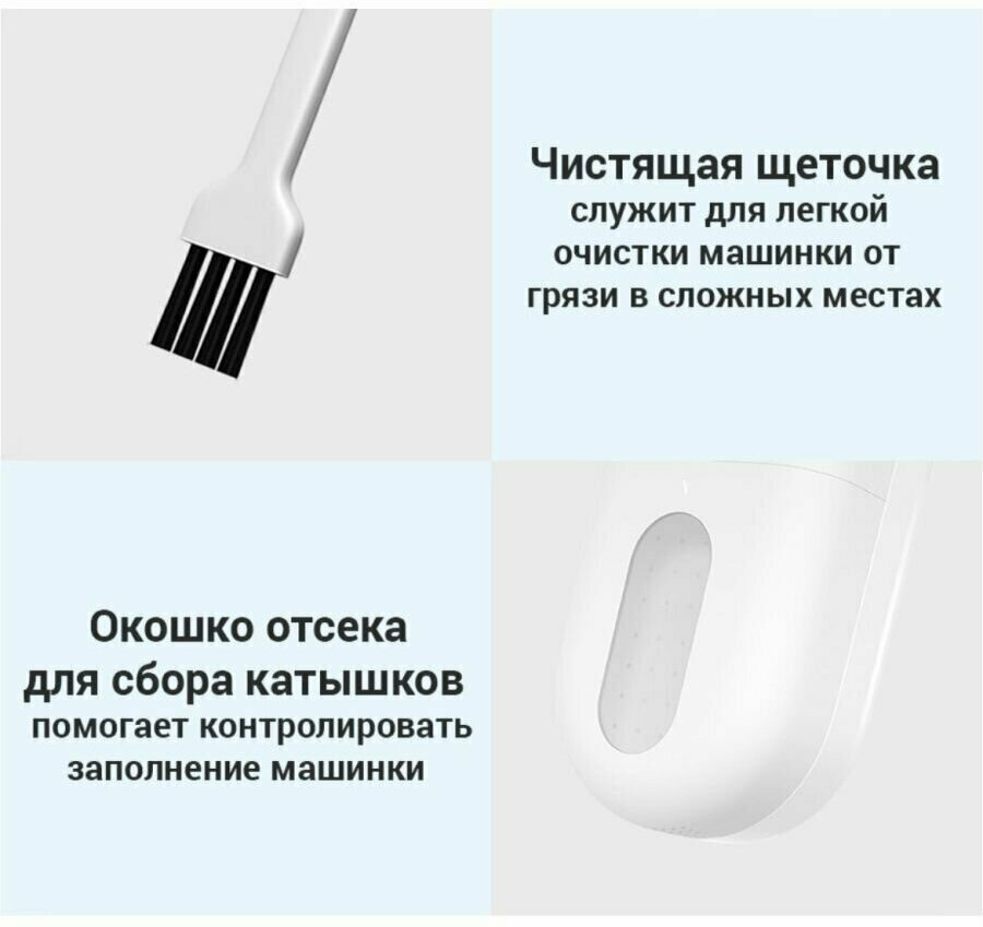 - Ёмкий контейнер: встроенный ворсосборник объёмом 25 мл требует очистки лишь после 15-20 средних изделий
