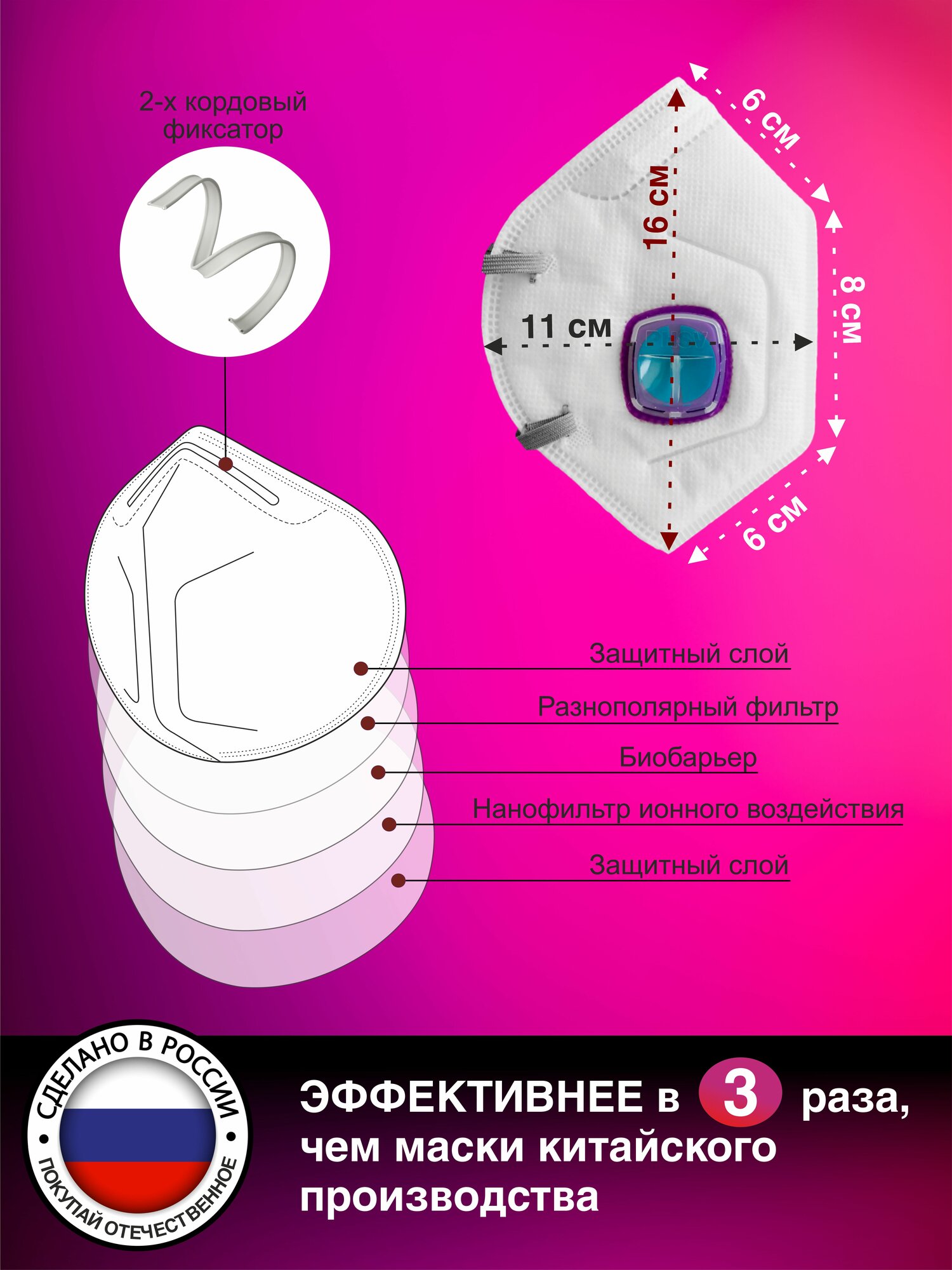 Респиратор FFP2 фильтрует 94% частиц размером от 0.3 микрон благодаря трехуровневой структуре фильтра. Внутренний слой из термопластичного полиуретана образует электростатический барьер для микроаэрозолей, что подтверждено испытаниями по ГОСТ Р 12.4.191-99. Регулируемая носовая пластина устраняет запотевание очков — распространенную проблему при использовании стандартных масок в условиях высокой влажности.