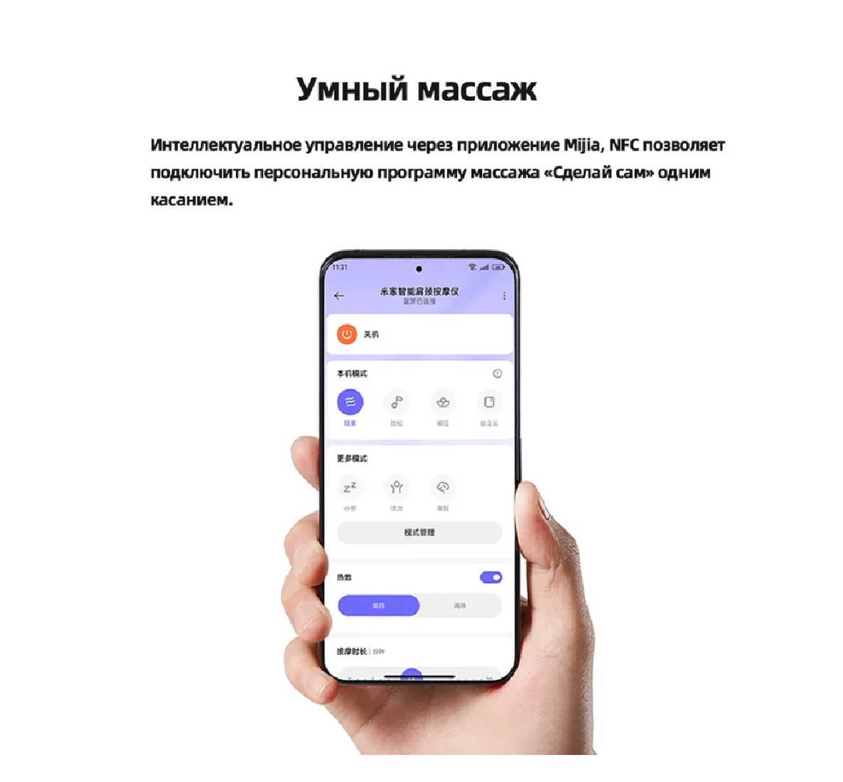 - 4 метода воздействия: Японская технология шиацу + вибрационный режим + продвинутая комбинация + релакс-программа
