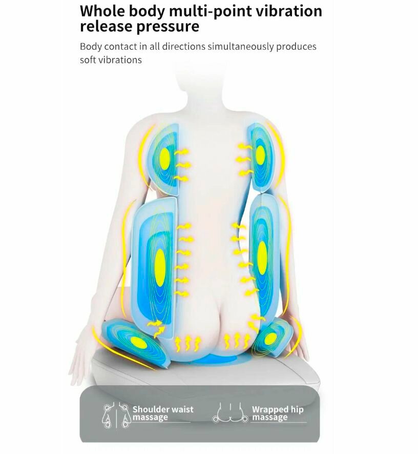 Система двухзонного инфракрасного нагрева покрывает 98% площади поясницы и 70% шейной зоны. Температурные датчики поддерживают +40°C ± 2°C, что: