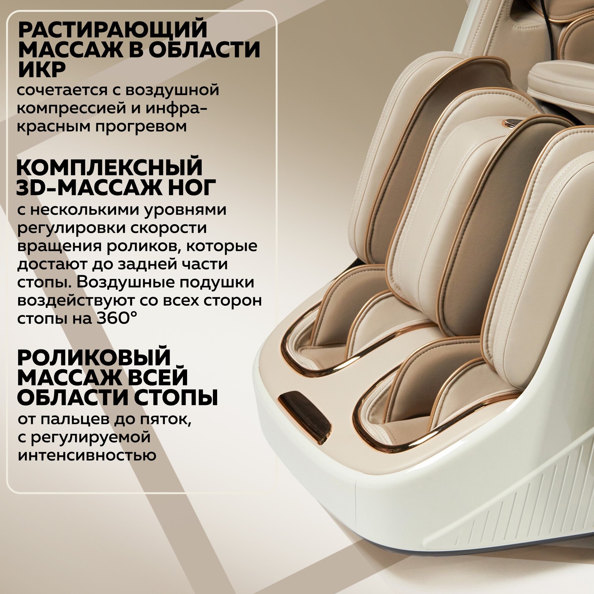 7D-массажные механизмы обеспечивают 20 автоматических программ с нейросенсорным сканированием тела. Уникальная система анализирует: