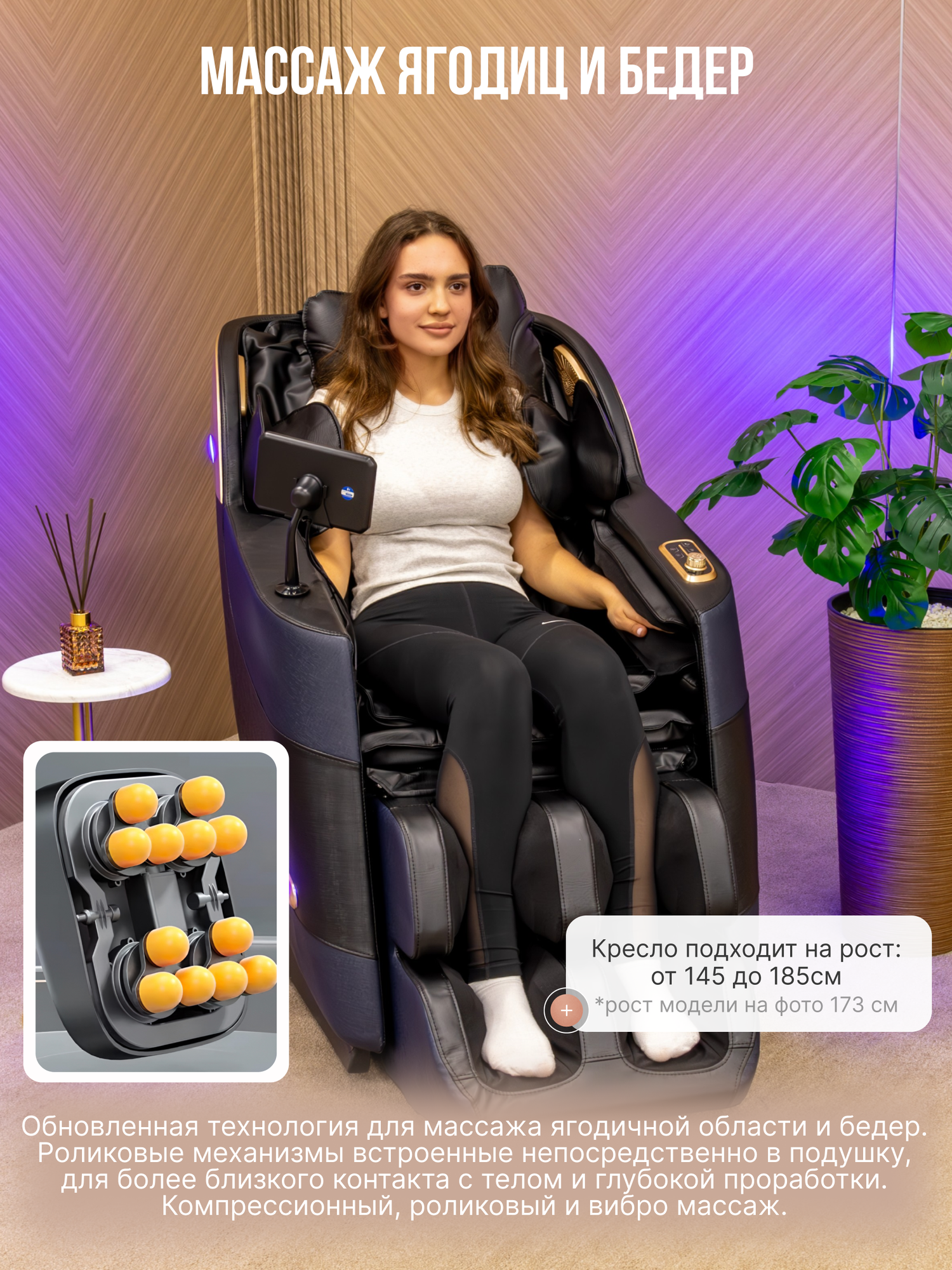 Эргономическая подстройка под рост 150-195 см реализована через интеллектуальные датчики позиционирования. Для высоких пользователей автоматически удлиняется траектория роликов, исключая "мертвые зоны" в области лопаток.