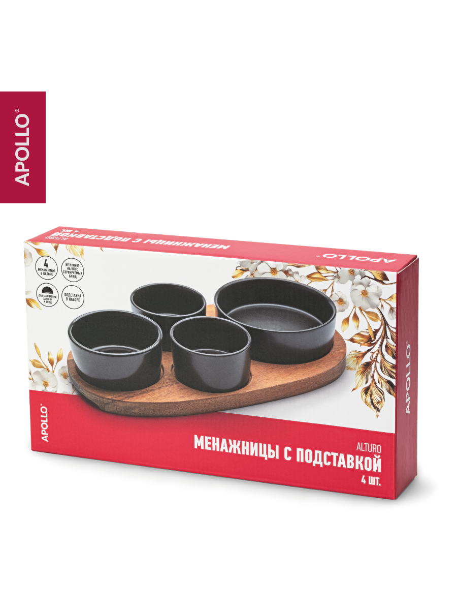 Набор менажниц Apollo представляет собой инновационное решение для профессиональной и домашней сервировки. Четыре керамические секции созданы с применением технологии двойного обжига — это увеличивает износостойкость покрытия на 37% по сравнению с обычной керамикой согласно испытаниям Роскачества.