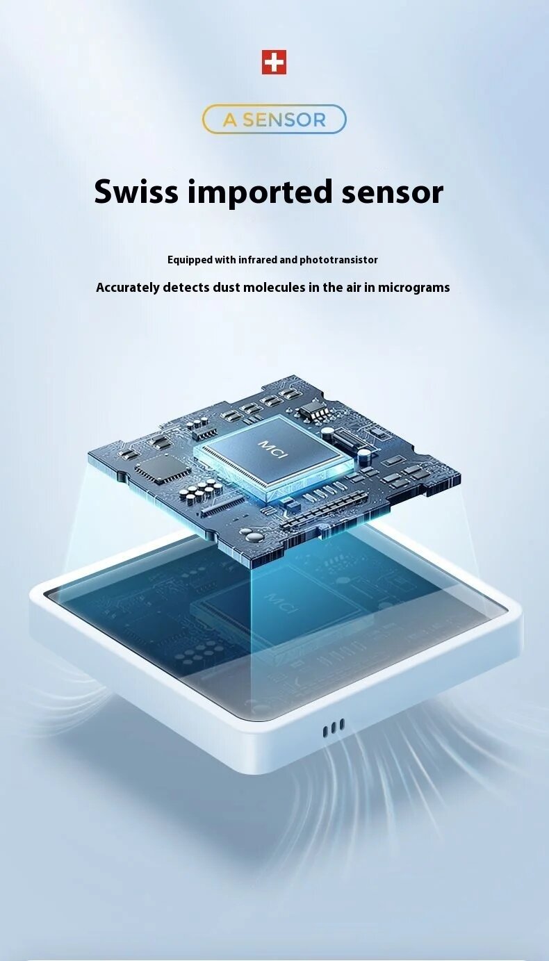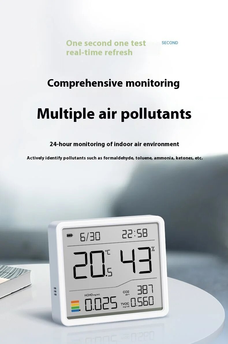 Точность измерений — основной приоритет устройства. Встроенные лазерный сенсор PM2.5 и инфракрасный детектор CO₂ обеспечивают погрешность не более ±3% при мониторинге воздуха, сравнимую с профессиональными метеокомплексами стоимостью от 15 000 рублей. Датчик температуры работает в диапазоне от -10°C до +50°C с шагом измерения 0.1°С, что критично для детских комнат и медицинских учреждений.