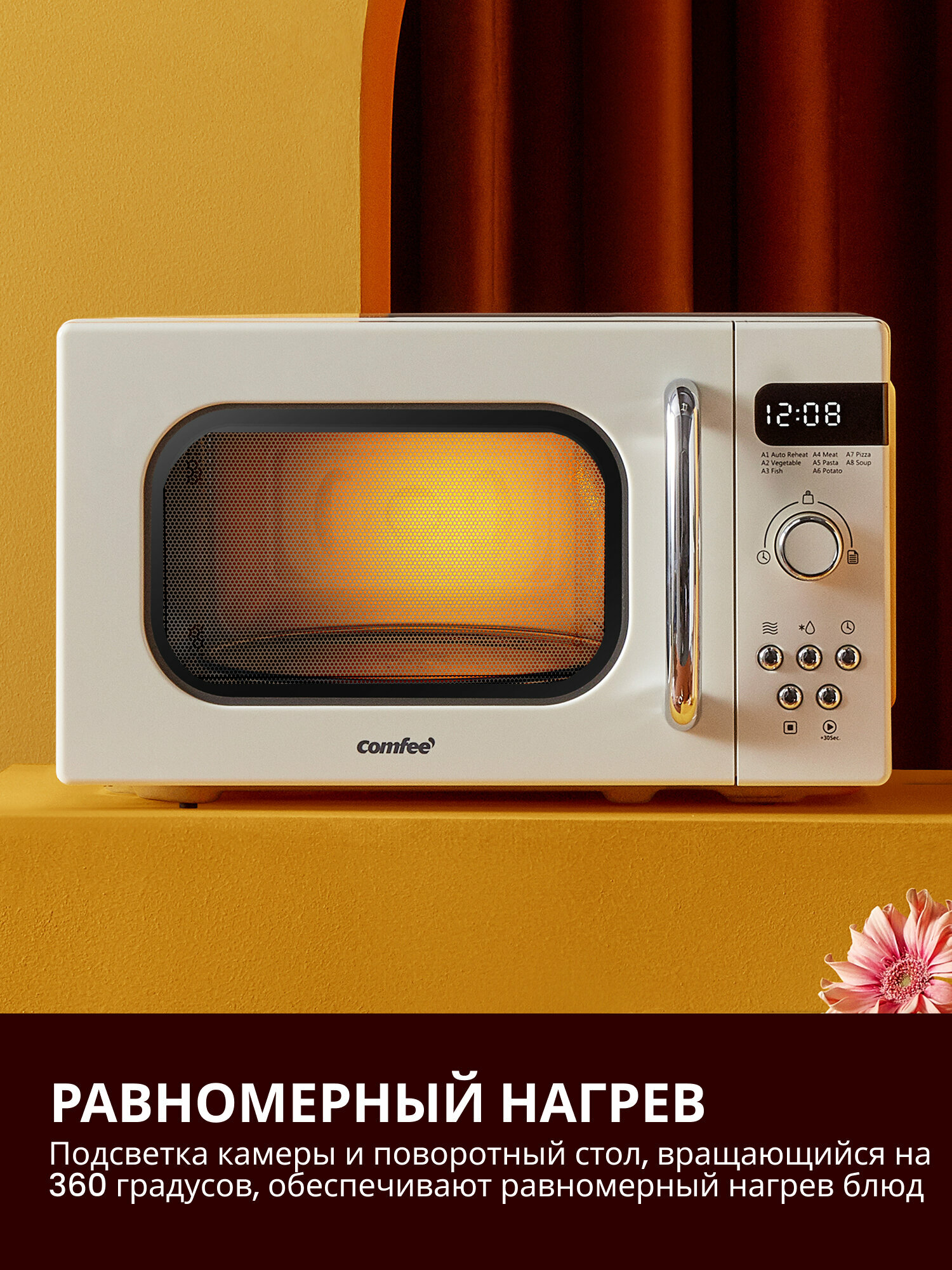 Ретро-стиль микроволновки сочетается с плитами Gorenje и холодильниками Smeg. Дополните интерьер хромированными аксессуарами для гармоничного вида. 87% покупателей выбирают модель CMW208A2RA-W именно за визуальное соответствие кухням в стиле шебби-шик.