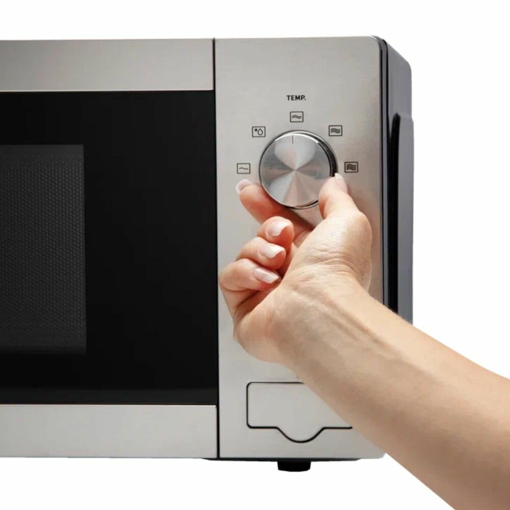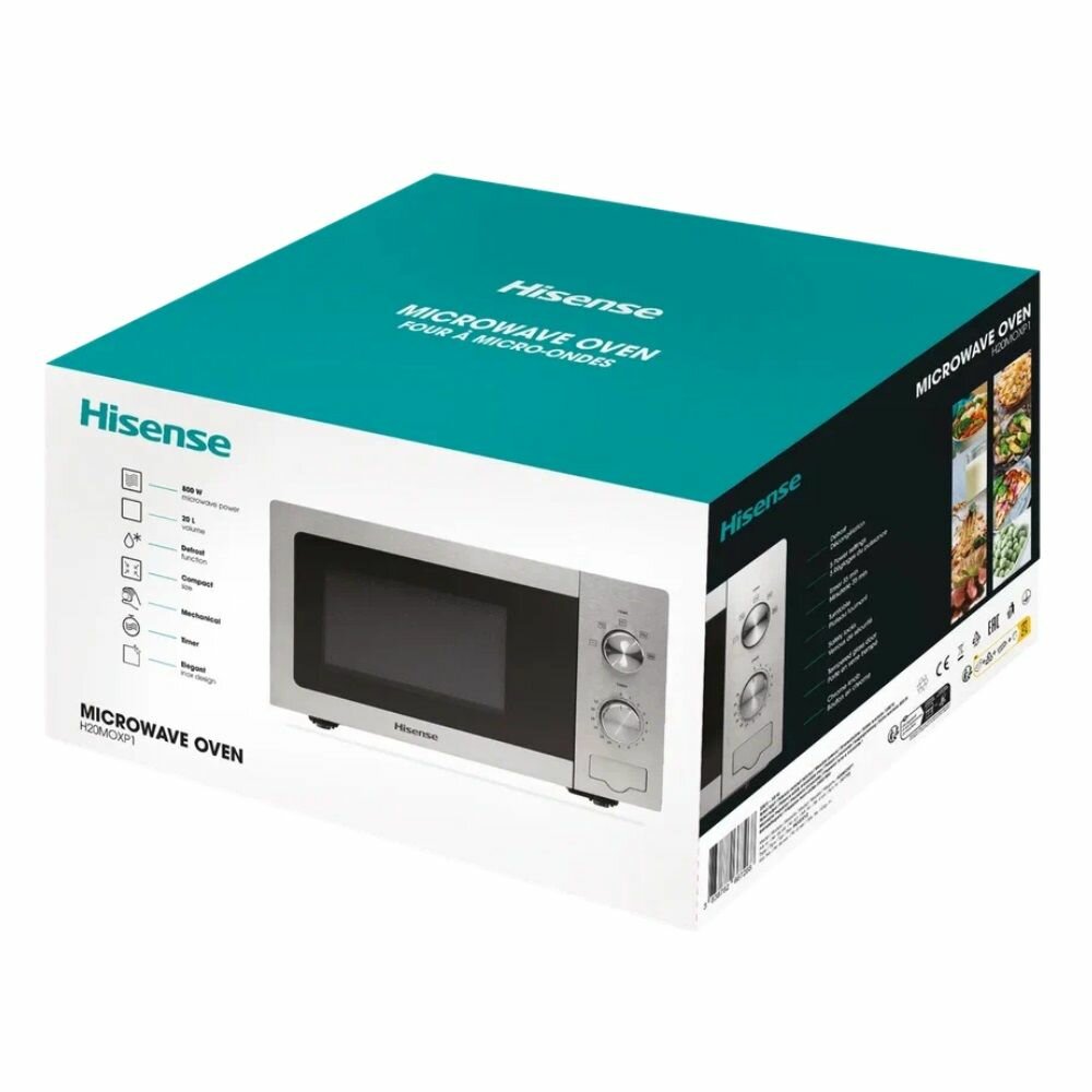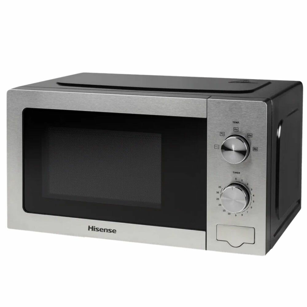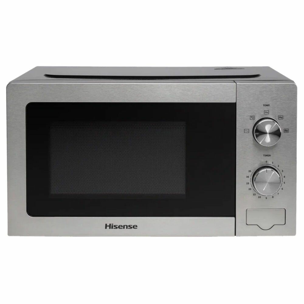 Модель Hisense H20MOXP1 с объемом камеры 20 литров оптимальна для небольших кухонь. Габариты 30.2x26.1x21.5 см позволяют разместить технику в ограниченном пространстве. Механическое управление с двумя поворотными регуляторами:
