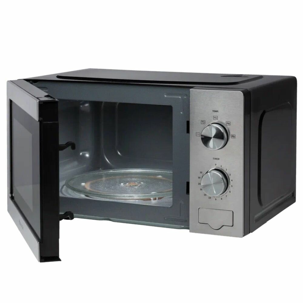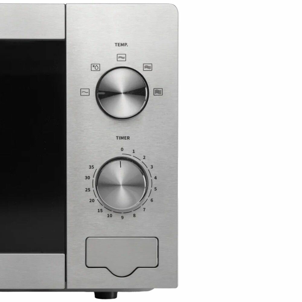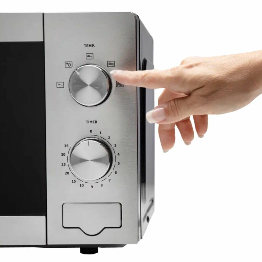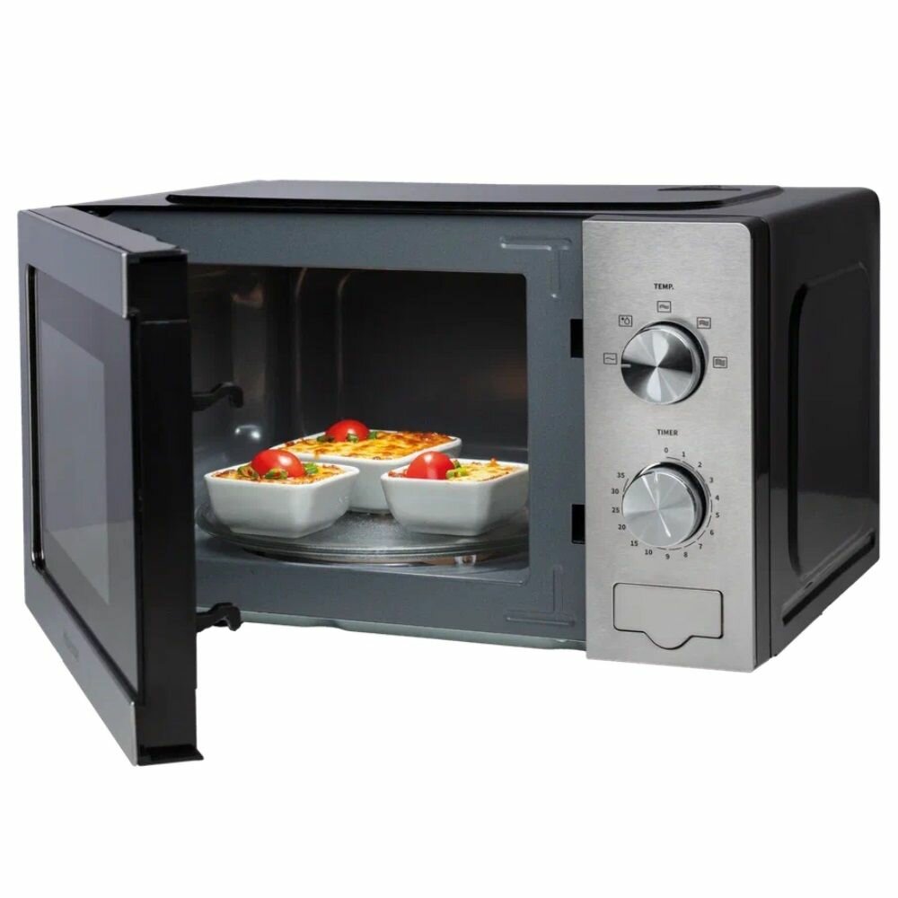 Модель Hisense H20MOXP1 с объемом камеры 20 литров оптимальна для небольших кухонь. Габариты 30.2x26.1x21.5 см позволяют разместить технику в ограниченном пространстве. Механическое управление с двумя поворотными регуляторами: