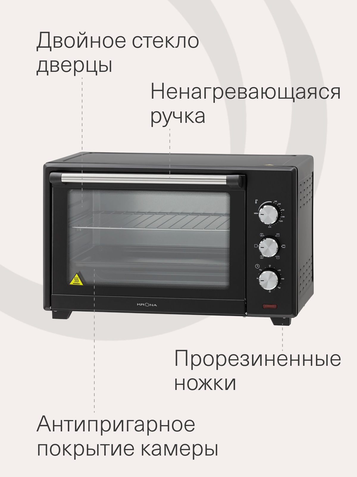 Компактная мини-печь KRONA OFEN 45л Bl создана для тех, кто ценит функциональность без компромиссов: