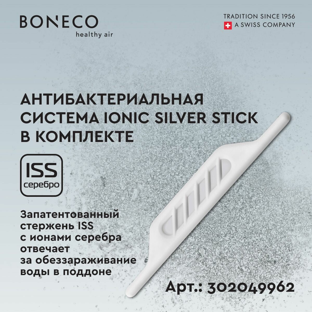 Ионизирующий стержень ISS (Ionic Silver Stick) – главное конкурентное преимущество Boneco W200. Серебряные ионы подавляют размножение бактерий внутри резервуара: