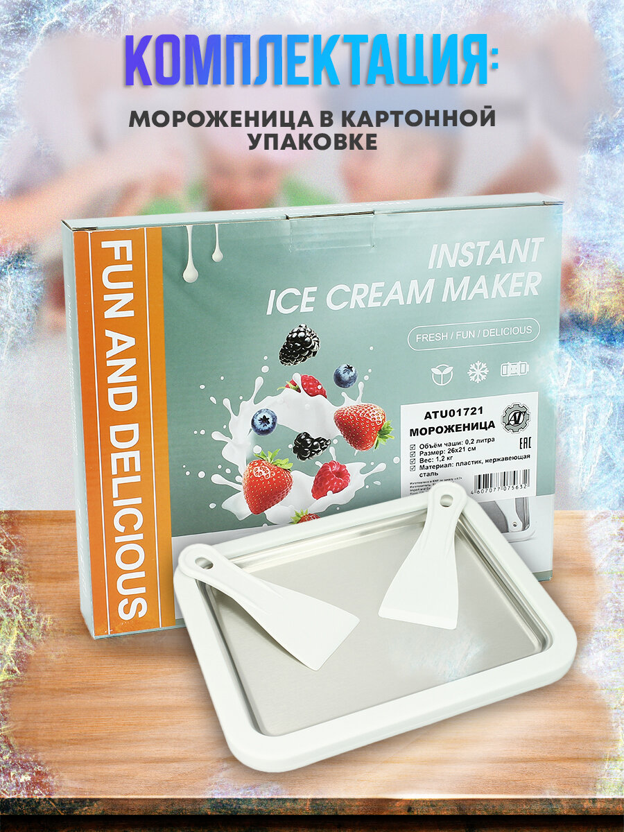 Компактный фризер объёмом 0.2 литра создан специально для детского использования. При габаритах 21×26 см прибор занимает минимальное место на кухне. Корпус из пищевого пластика гарантирует безопасность при контакте с продуктами: