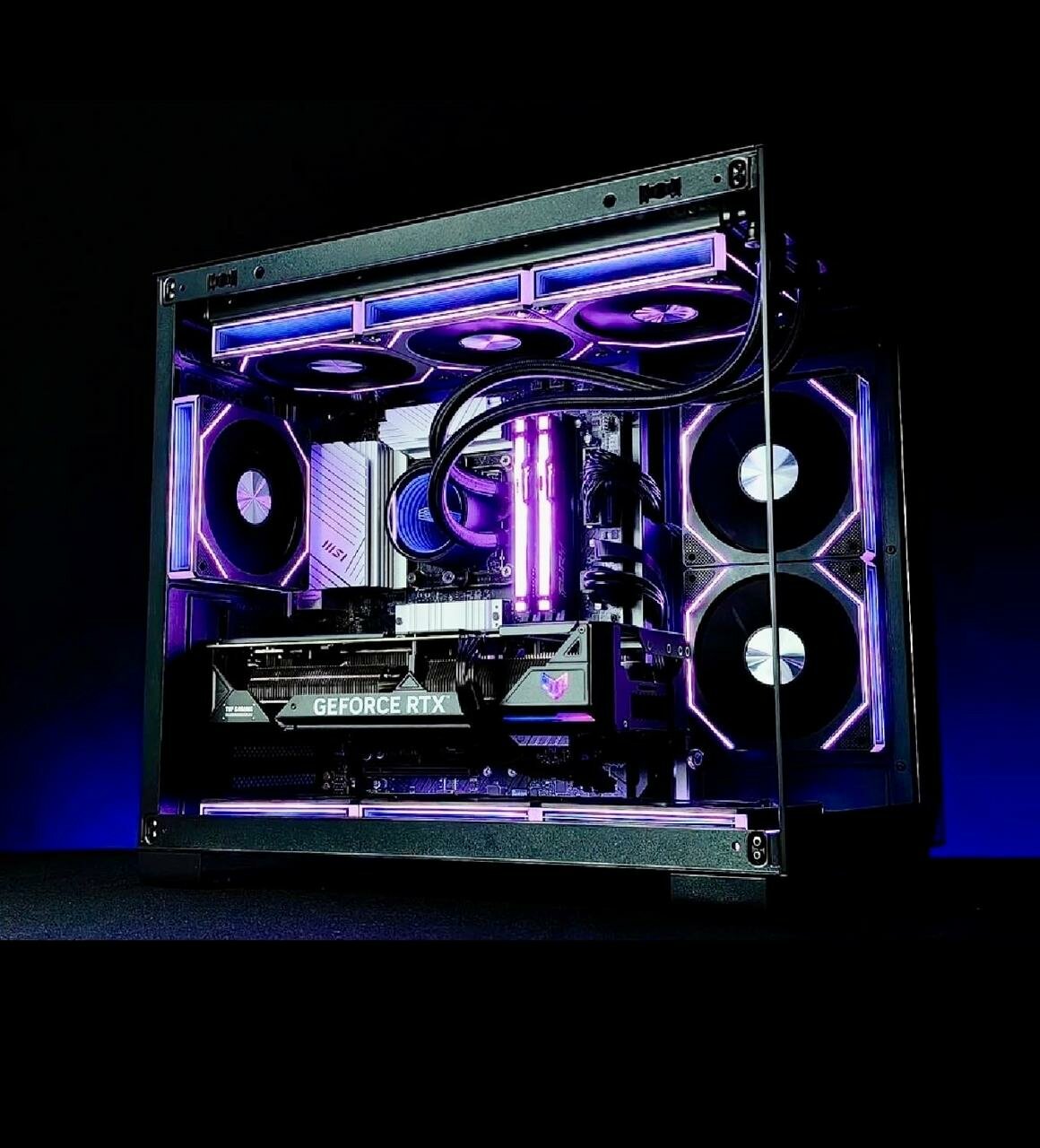 Сборка использует систему охлаждения с двумя 240-мм радиаторами, что поддерживает температуру процессора ниже 82°C при длительной нагрузке. Блок питания 1000W 80 Plus Gold обеспечивает стабильное энергоснабжение всех компонентов с КПД 92% при 50% загрузке. В режиме пиковой производительности ПК потребляет до 750W с запасом мощности для апгрейда.