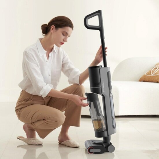 Мощность всасывания 300 Вт обеспечивает профессиональный уровень уборки — по данным лабораторных тестов, Dreame H12 Pro поднимает до 98% сухого мусора (песок, крошки) и впитывает жидкости со скоростью 0.5 л/мин.