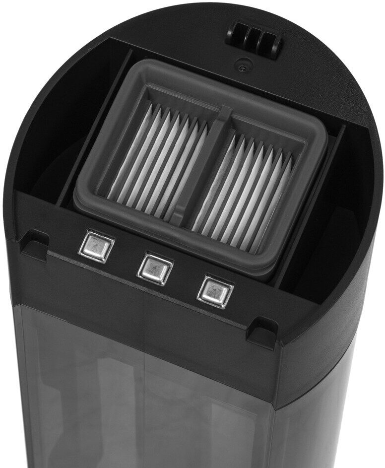 Уборка в авто: узкая насадка в 2.5 см проникает за сидения, а кейс для хранения в багажнике предотвращает повреждения. Полная зарядка аккумулятора занимает 4 часа.