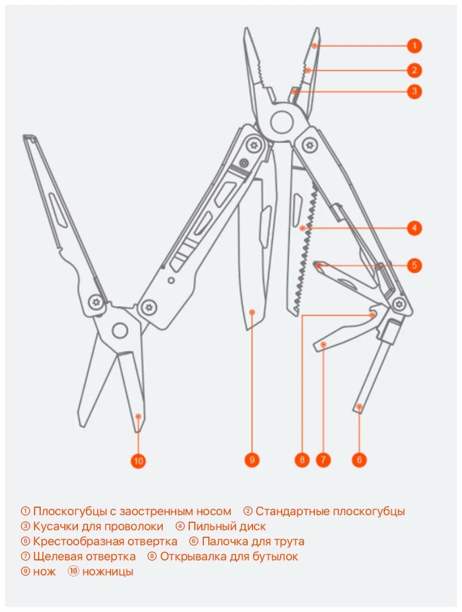 | Зубчатый нож | Разделка древесины, резка тросов | 3.2 мм | На 0.4 мм толще, чем у Xiaomi Mijia |