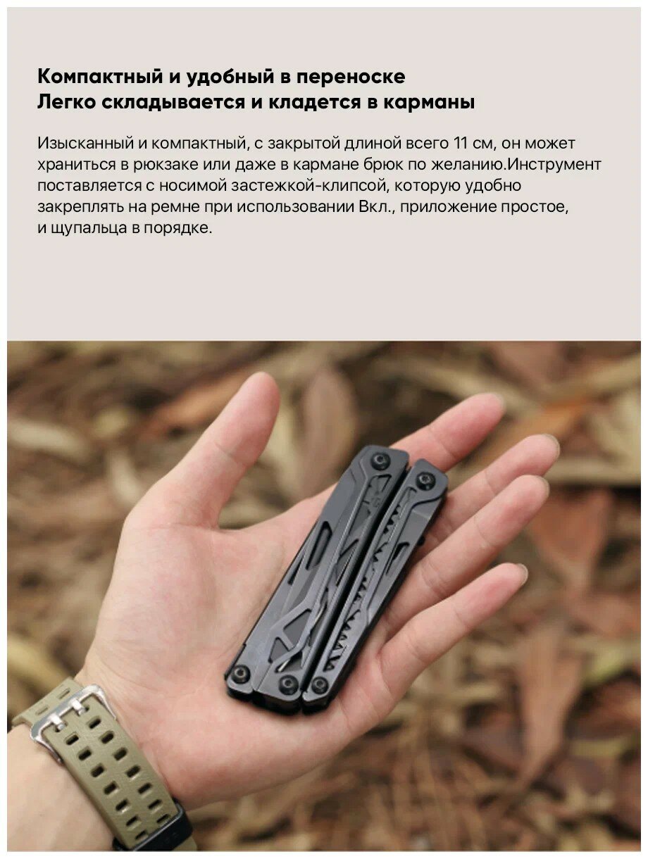 При весе 253 грамма мультитул Nextool на 12% легче среднестатистических аналогов (по данным исследования MarkTool 2023). Это позволяет носить NE0123 в: