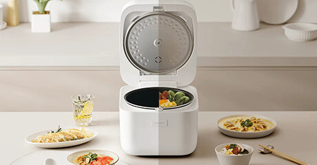 4-литровая чаша с многослойным тефлоновым покрытием рассчитана на приготовление 8 порций риса или 1.5 кг овощей на пару. Мощность 860 Вт обеспечивает быстрый разогрев — вода закипает за 6-7 минут