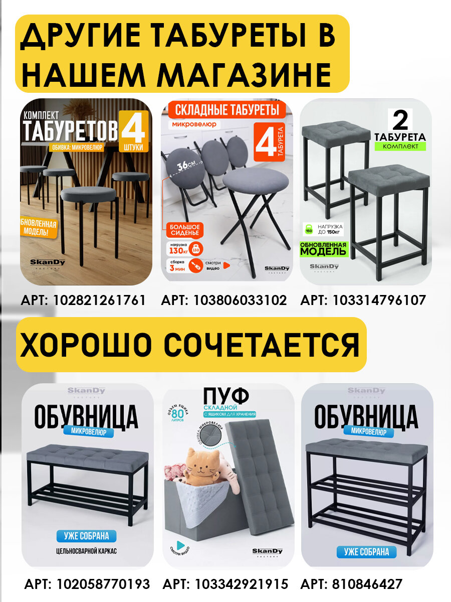 - Ценообразование: Комплект 4 шт = цена 3 индивидуальных табуретов