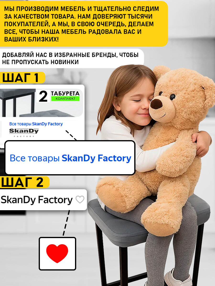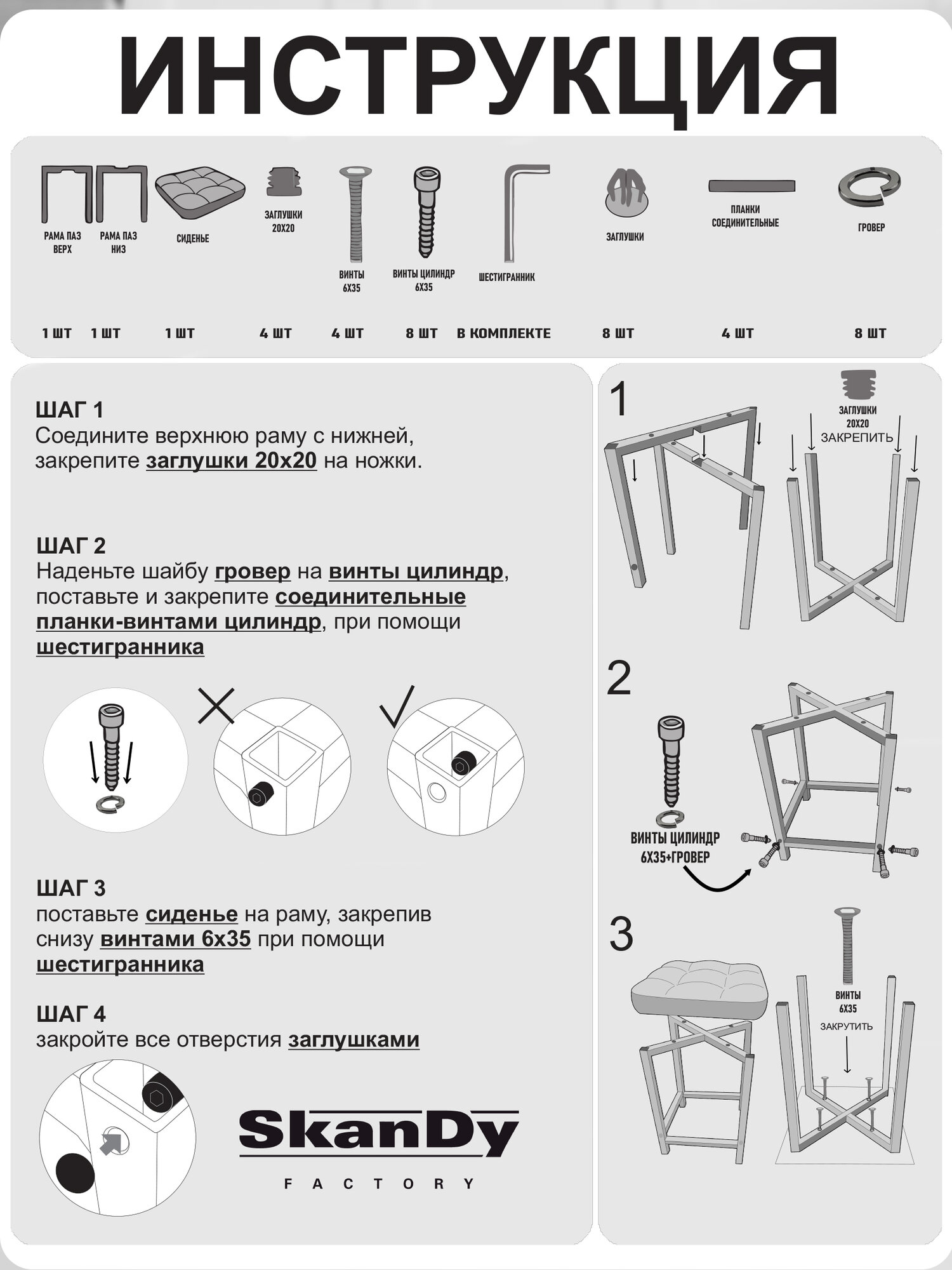 | Сборка | 4,7 мин/табурет | На 30% быстрее за счет интуитивной схемы и пронумерованных деталей |