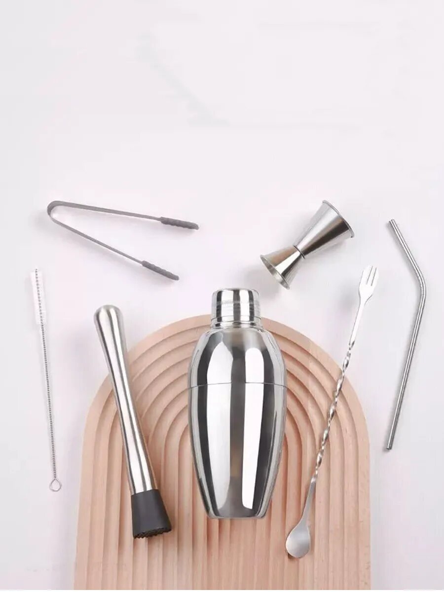 - Полная комплектация: крышка-кап с двойным ситечком, бостонский шейкер 750 мл, стрейнер из титанового сплава, мерник 60 мл с градацией, барная ложка с вилочным концом