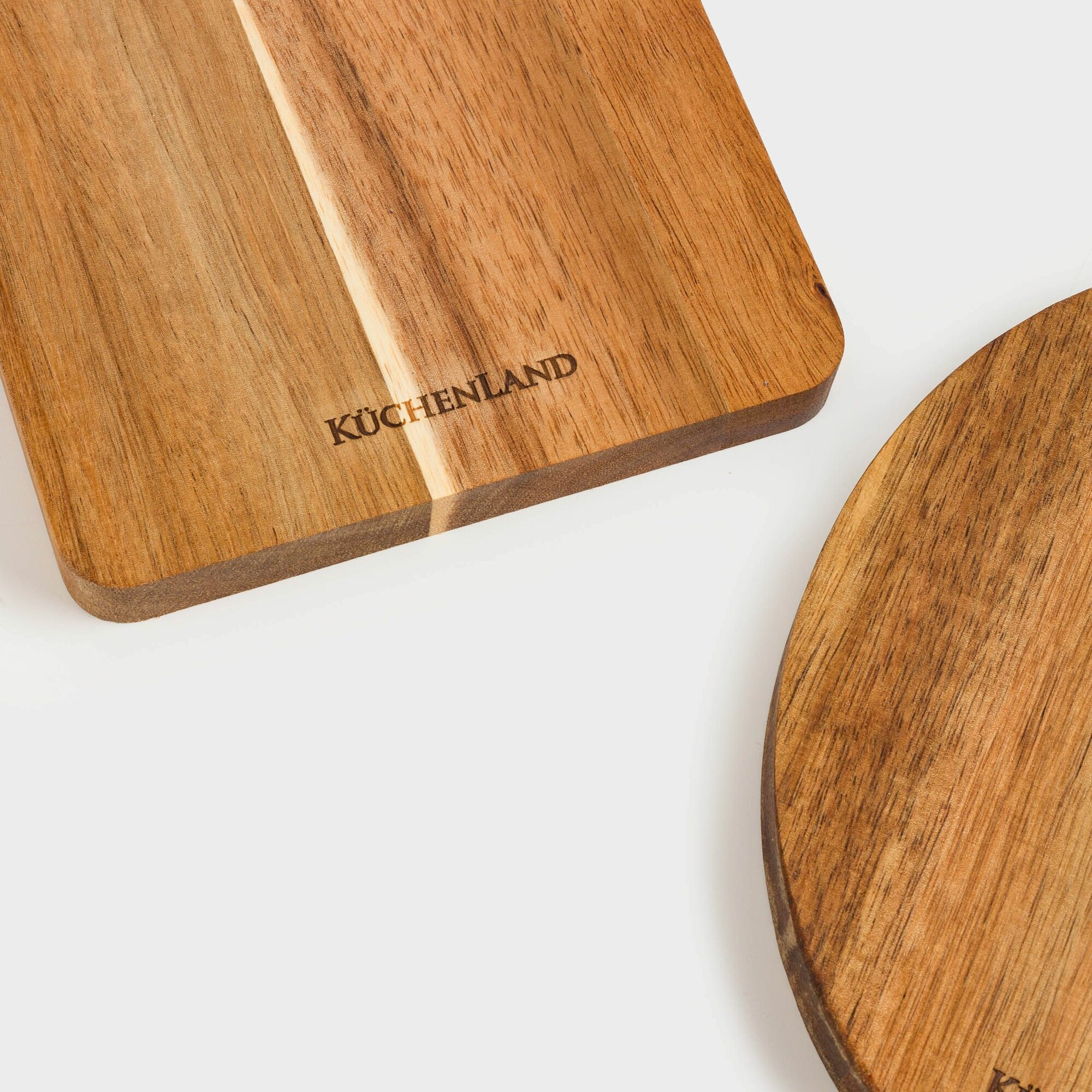 Набор Noble Tree сочетает дубовую древесину с подставкой из стали 304, обеспечивающей устойчивость. Толщина рабочей поверхности 18 мм предотвращает деформацию: испытания показывают сохранение геометрии при нагрузке до 15 кг. Габариты прямоугольной доски (40х25см) подходят для разделки мяса, круглая (Диаметр 30см) оптимальна для овощей и фруктов.