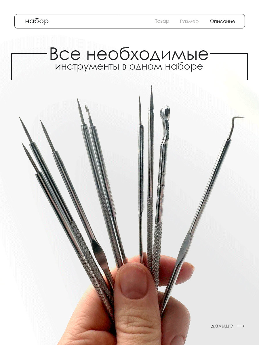 ΠΠ°Π±ΠΎΡ ΠΈΠ· 9 ΠΏΡΠΎΡΠ΅ΡΡΠΈΠΎΠ½Π°Π»ΡΠ½ΡΡ ΠΈΠ½ΡΡΡΡΠΌΠ΅Π½ΡΠΎΠ² ΡΠΎΠ·Π΄Π°Π½ Π΄Π»Ρ ΠΊΠΎΠΌΠΏΠ»Π΅ΠΊΡΠ½ΠΎΠ³ΠΎ ΡΠ΅ΡΠ΅Π½ΠΈΡ ΡΠ΅ΡΡΡΡΡ ΠΊΠ»ΡΡΠ΅Π²ΡΡ Π·Π°Π΄Π°Ρ: ΠΌΠ΅Ρ Π°Π½ΠΈΡΠ΅ΡΠΊΠΎΠ΅ ΡΠ΄Π°Π»Π΅Π½ΠΈΠ΅ ΡΠ΅ΡΠ½ΡΡ ΡΠΎΡΠ΅ΠΊ, Π³Π»ΡΠ±ΠΎΠΊΠ°Ρ ΠΎΡΠΈΡΡΠΊΠ° ΠΏΠΎΡ, ΠΏΡΠΎΡΠΈΠ»Π°ΠΊΡΠΈΠΊΠ° Π°ΠΊΠ½Π΅ ΠΈ ΠΏΠΎΡΡΠΎΠ±ΡΠ°Π±ΠΎΡΠΊΠ° ΠΊΠΎΠΆΠΈ. ΠΠ΅Π΄ΠΈΡΠΈΠ½ΡΠΊΠ°Ρ Π½Π΅ΡΠΆΠ°Π²Π΅ΡΡΠ°Ρ ΡΡΠ°Π»Ρ ΠΌΠ°ΡΠΊΠΈ 440Π‘ ΠΎΠ±Π΅ΡΠΏΠ΅ΡΠΈΠ²Π°Π΅Ρ Π°Π½ΡΠΈΠ±Π°ΠΊΡΠ΅ΡΠΈΠ°Π»ΡΠ½ΡΠ΅ ΡΠ²ΠΎΠΉΡΡΠ²Π° ΠΈΠ½ΡΡΡΡΠΌΠ΅Π½ΡΠΎΠ², ΡΠ½ΠΈΠΆΠ°Ρ ΡΠΈΡΠΊ Π²ΠΎΡΠΏΠ°Π»Π΅Π½ΠΈΠΉ Π½Π° 73% ΠΏΠΎ ΡΡΠ°Π²Π½Π΅Π½ΠΈΡ Ρ Π°Π»ΡΠΌΠΈΠ½ΠΈΠ΅Π²ΡΠΌΠΈ Π°Π½Π°Π»ΠΎΠ³Π°ΠΌΠΈ (ΠΈΡΡΠ»Π΅Π΄ΠΎΠ²Π°Π½ΠΈΠ΅ SkinCare Research, 2023).