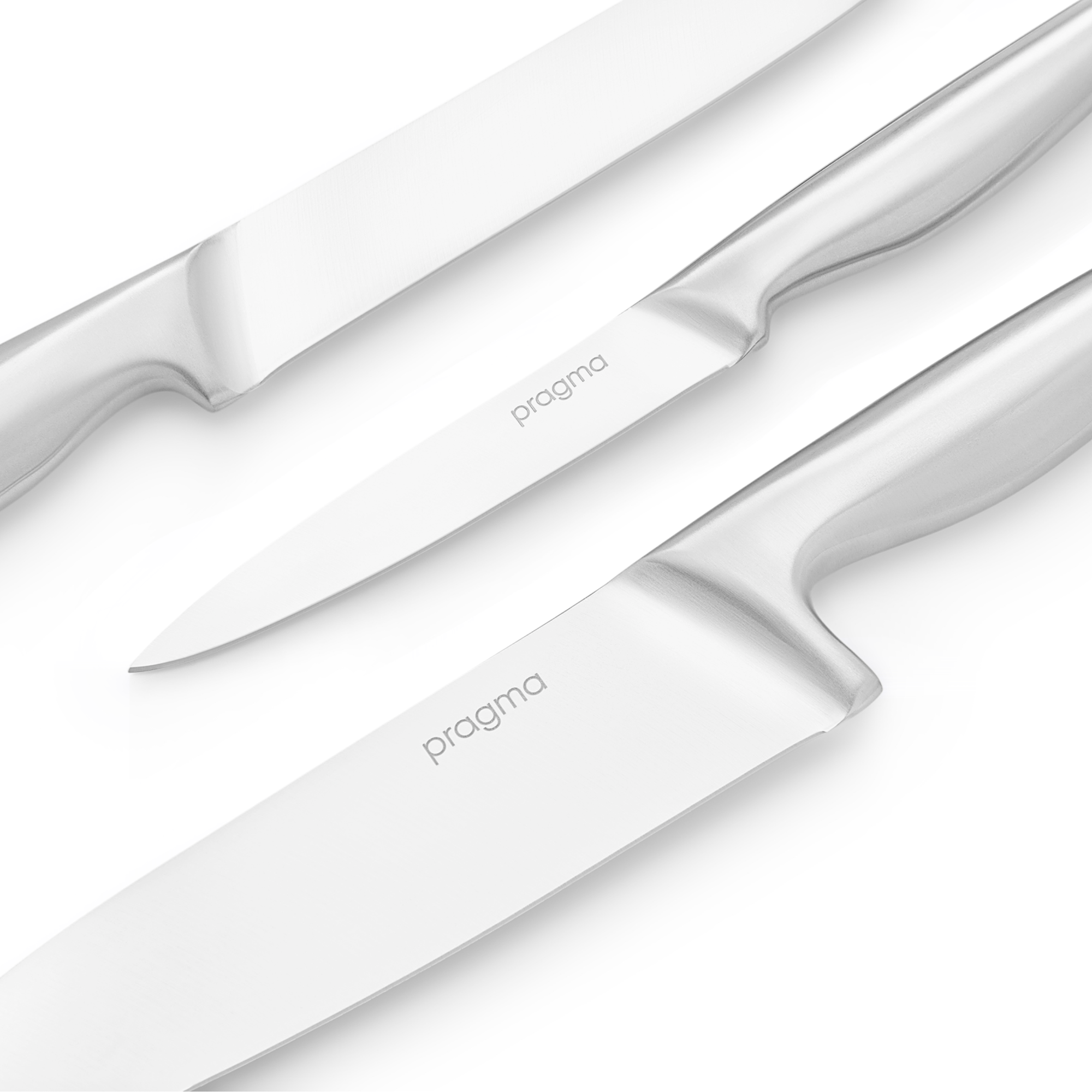 Цельнометаллическая конструкция ножей Pragma Sital исключает точки излома. Три предмета в наборе покрывают 95% кухонных задач: