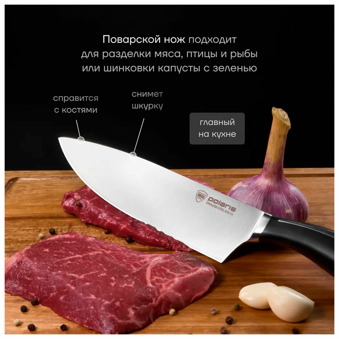 Набор Polaris Stein-4SS включает 3 рабочих ножа и точилку, спроектированных для профессионального использования: