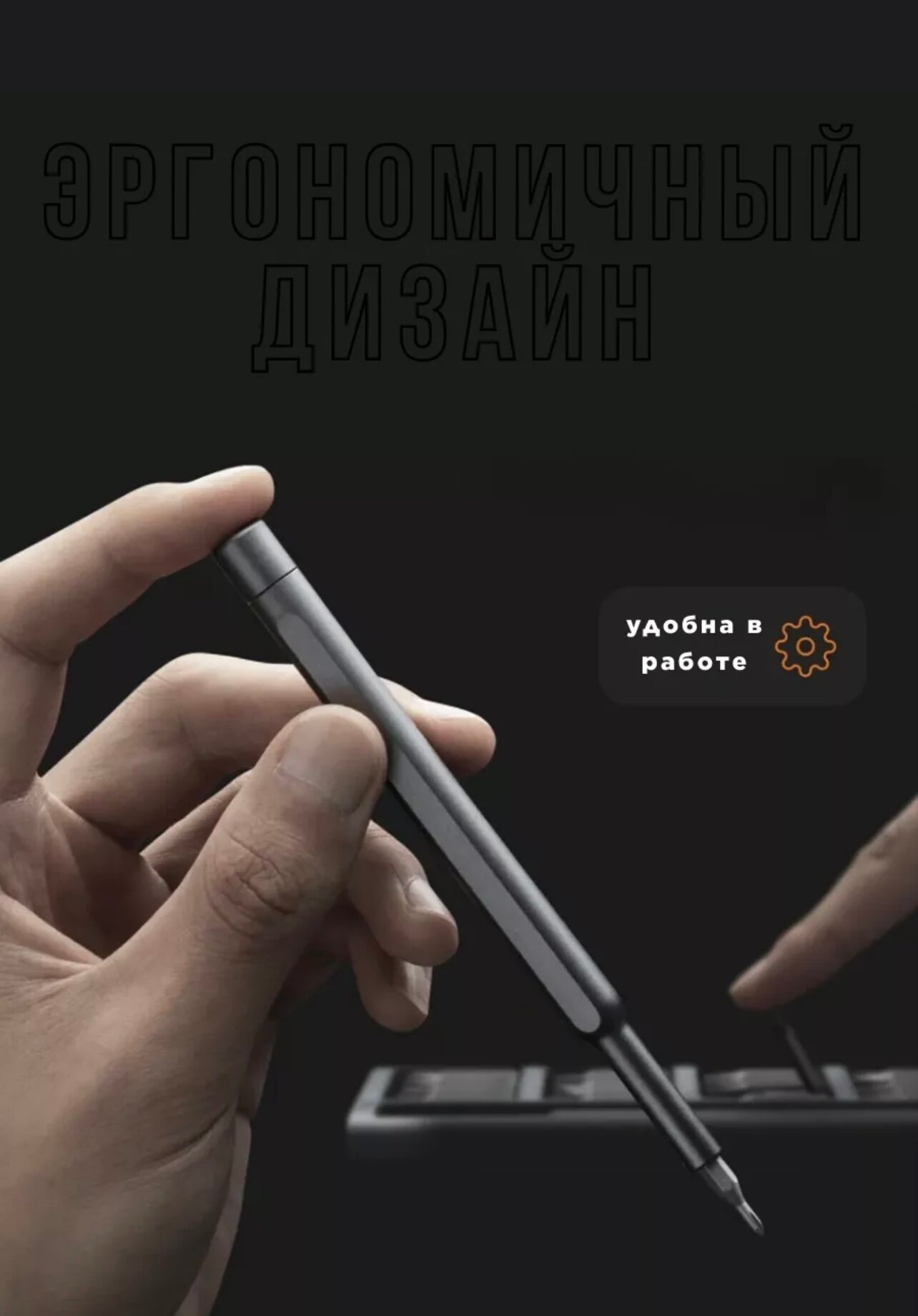 Эргономичная рукоятка с TPU-покрытием обеспечивает надежный захват при работе с микро-винтами: