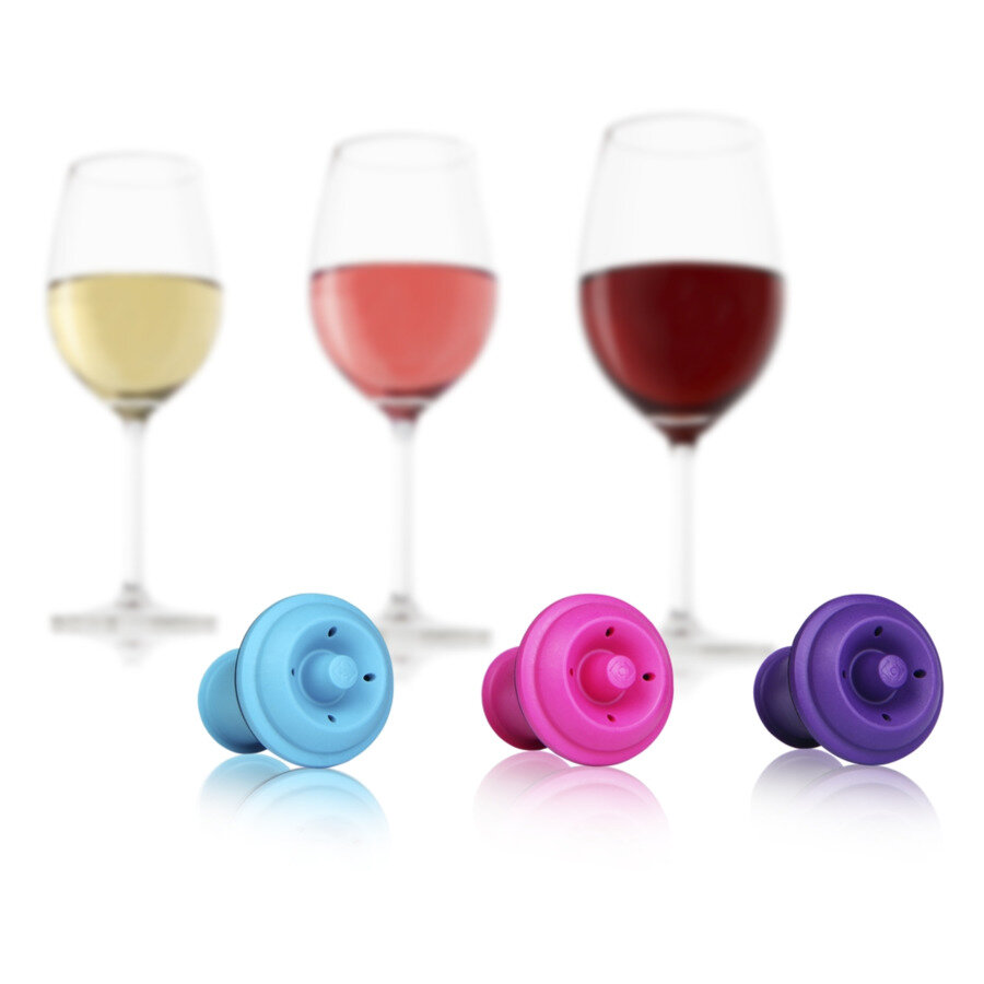 Набор пробок Vacu Vin 3х3 см создан для продления свежести овощей, сыров и готовых блюд благодаря технологии герметичного прилегания. Каждая пробка разработана в лабораториях Нидерландов с 1988 года как элемент экосистемы вакуумного хранения. Три экземпляра разной расцветки позволяют сортировать контейнеры по типу содержимого.