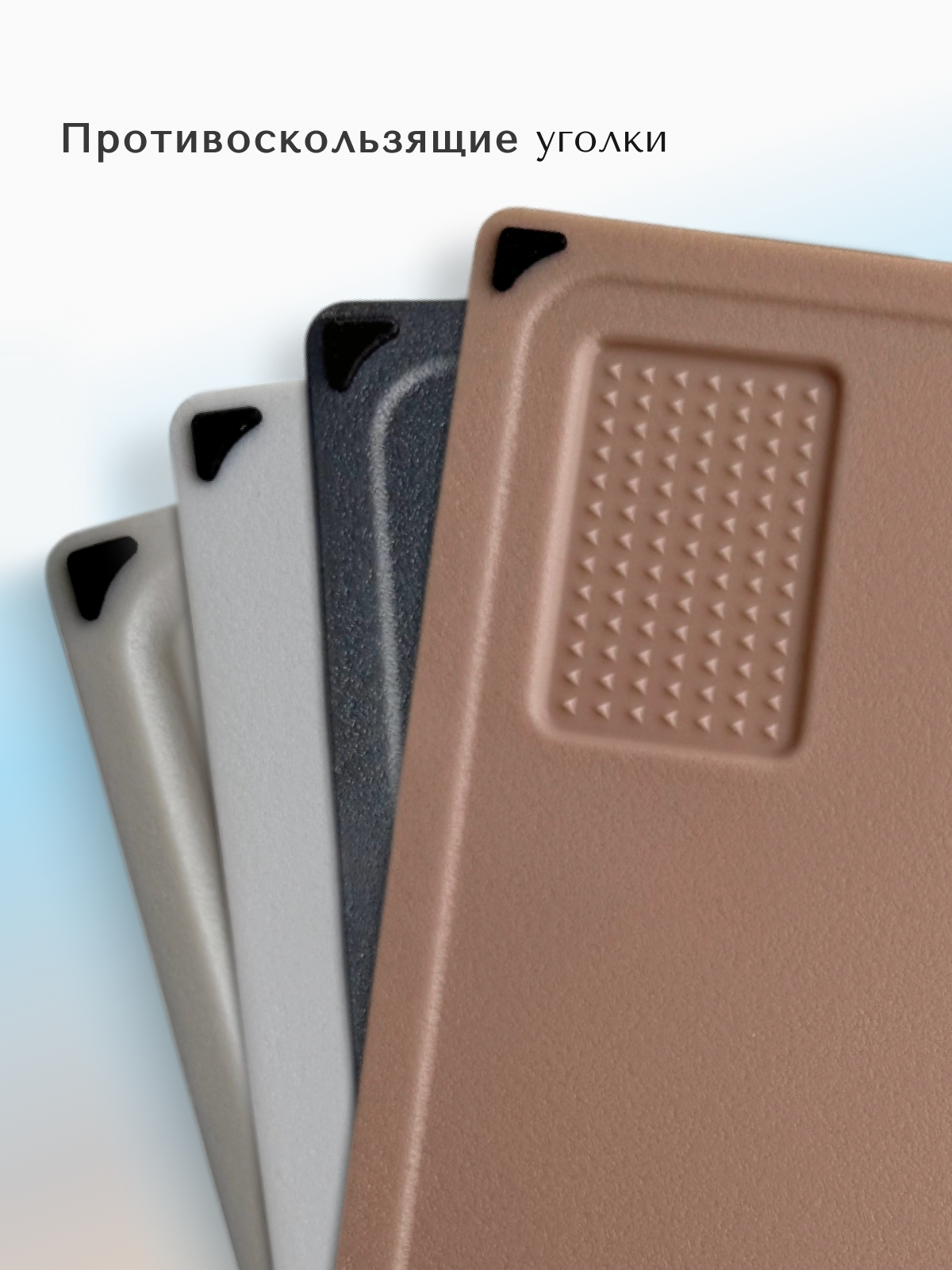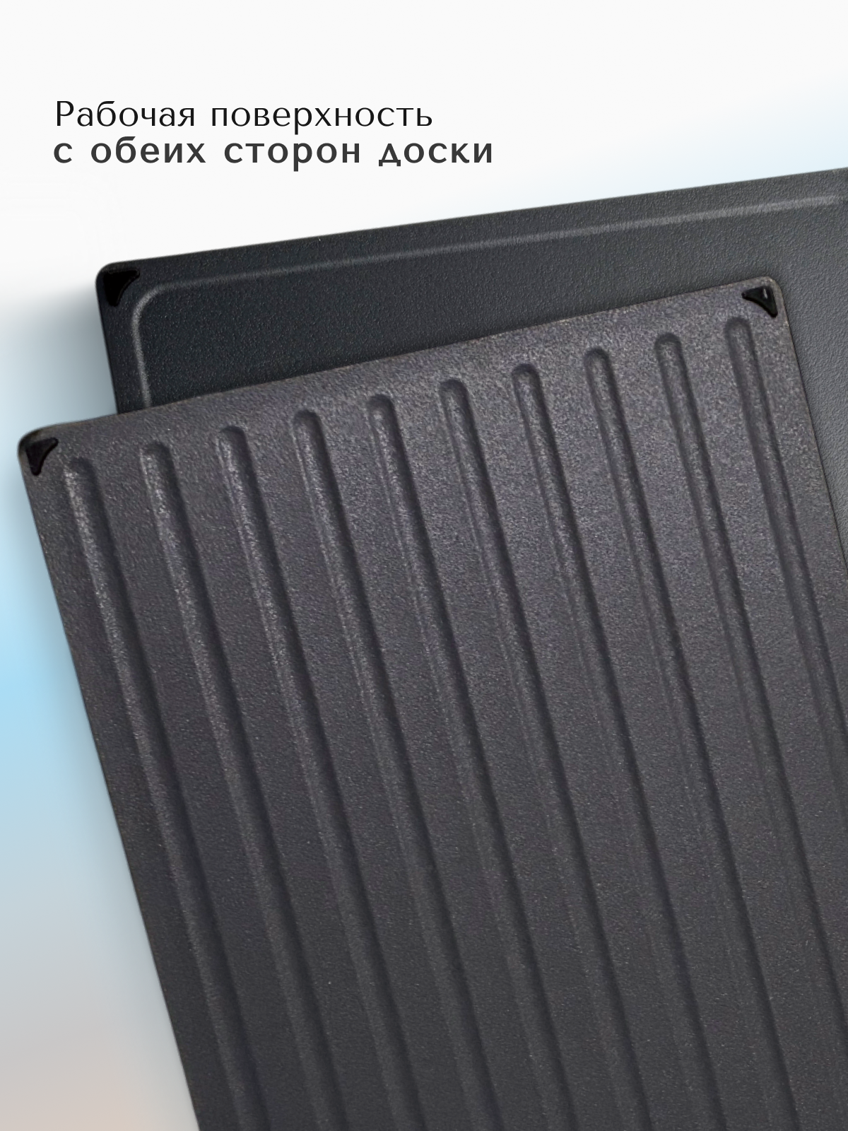 Нескользящие резиновые ножки прошли тесты на мокрых столешницах из стекла, дерева и гранита. При горизонтальном усилии 15 кг доска сохраняет неподвижность.