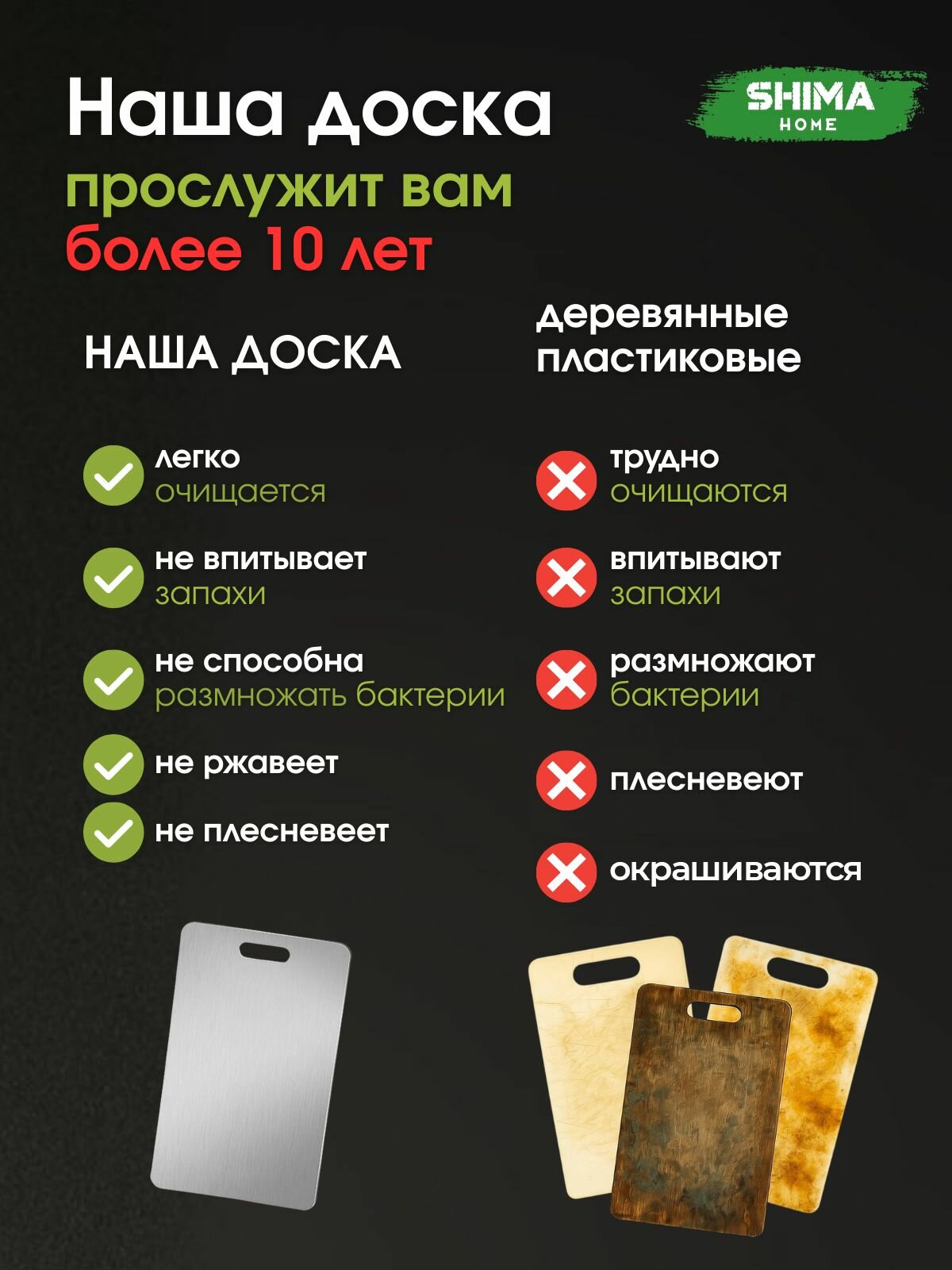 Металлическая разделочная платформа 23×34 см премиум-серии превосходит деревянные аналоги по ключевым эксплуатационным параметрам: