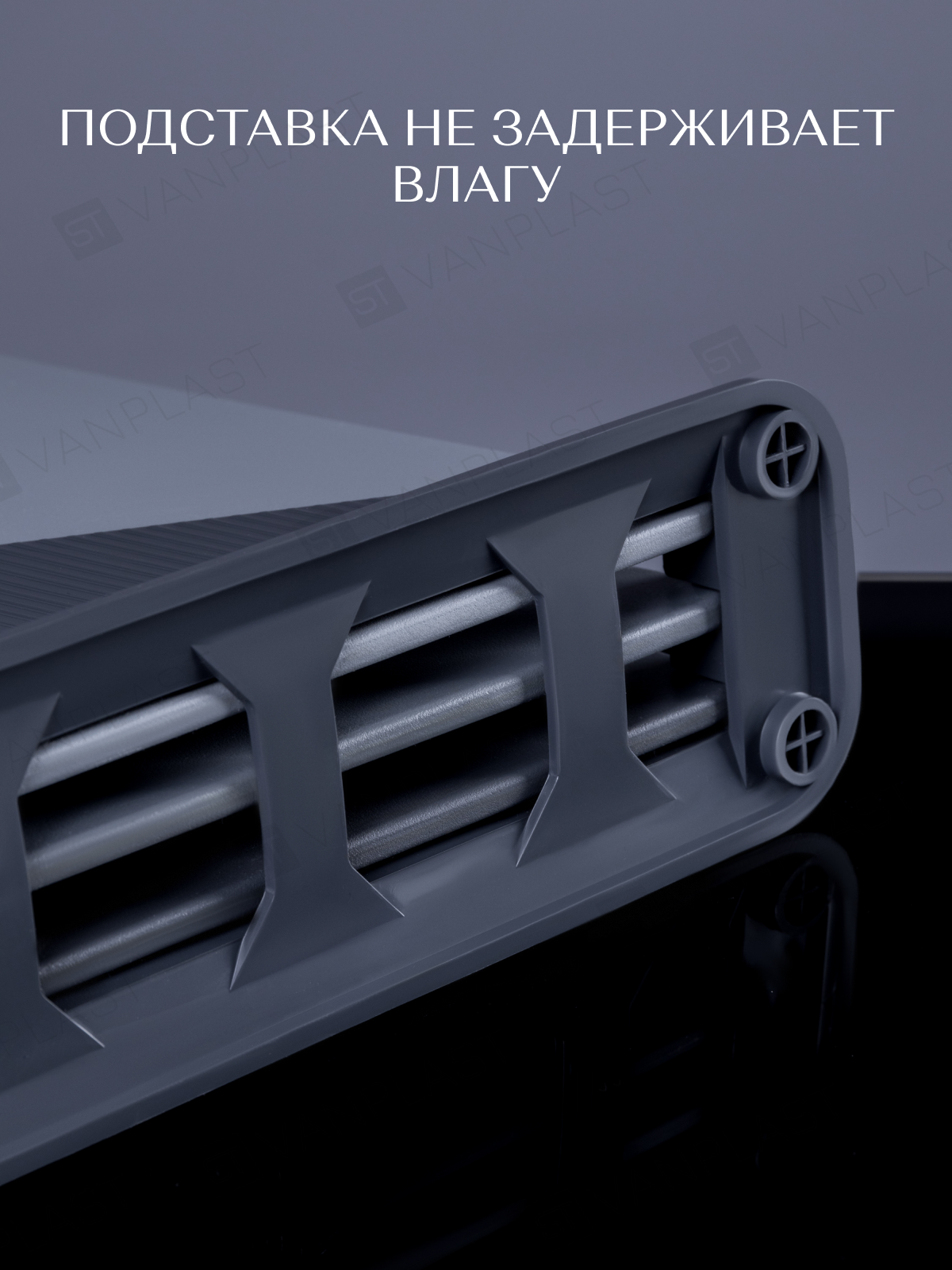 - Антискользящие резиновые вставки на углах фиксируют положение на столешнице