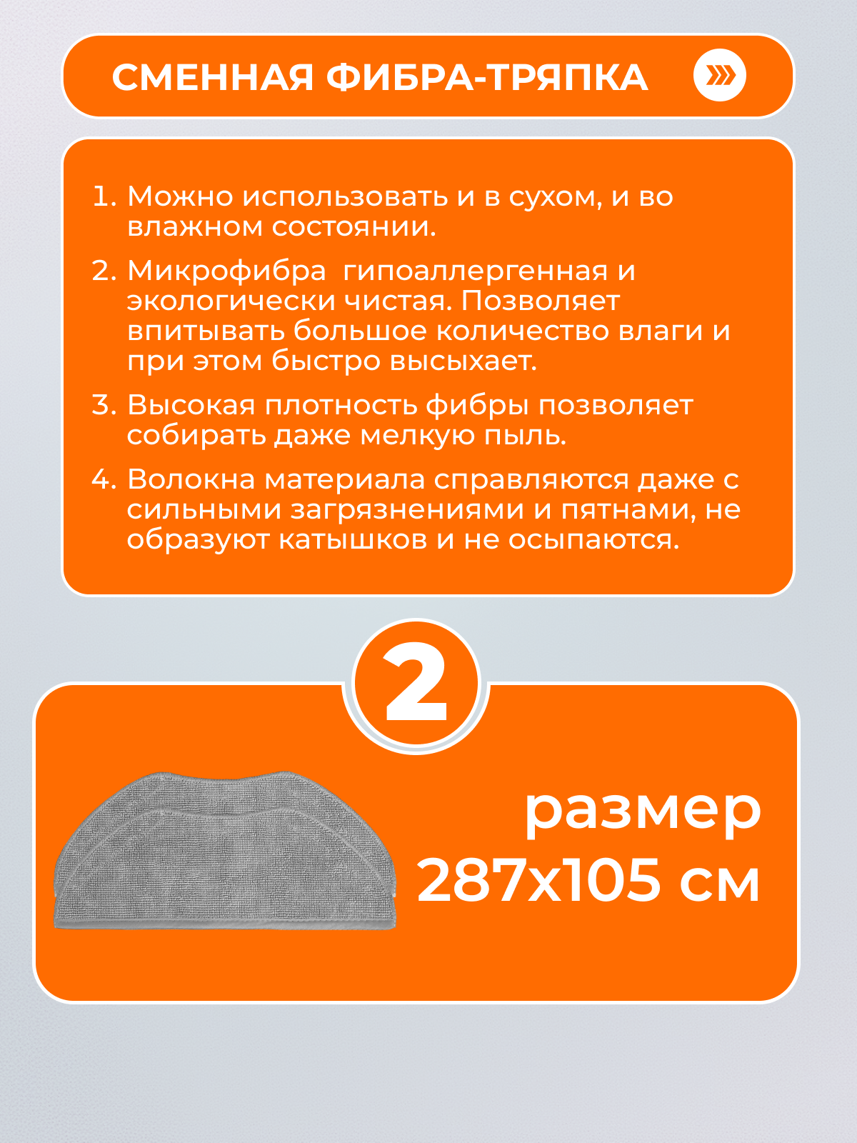 - ● Влажная обработка: микрофибра 260 г/м² с гидрофильтрующим слоем
