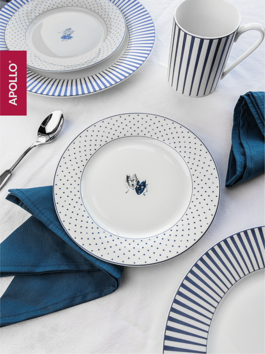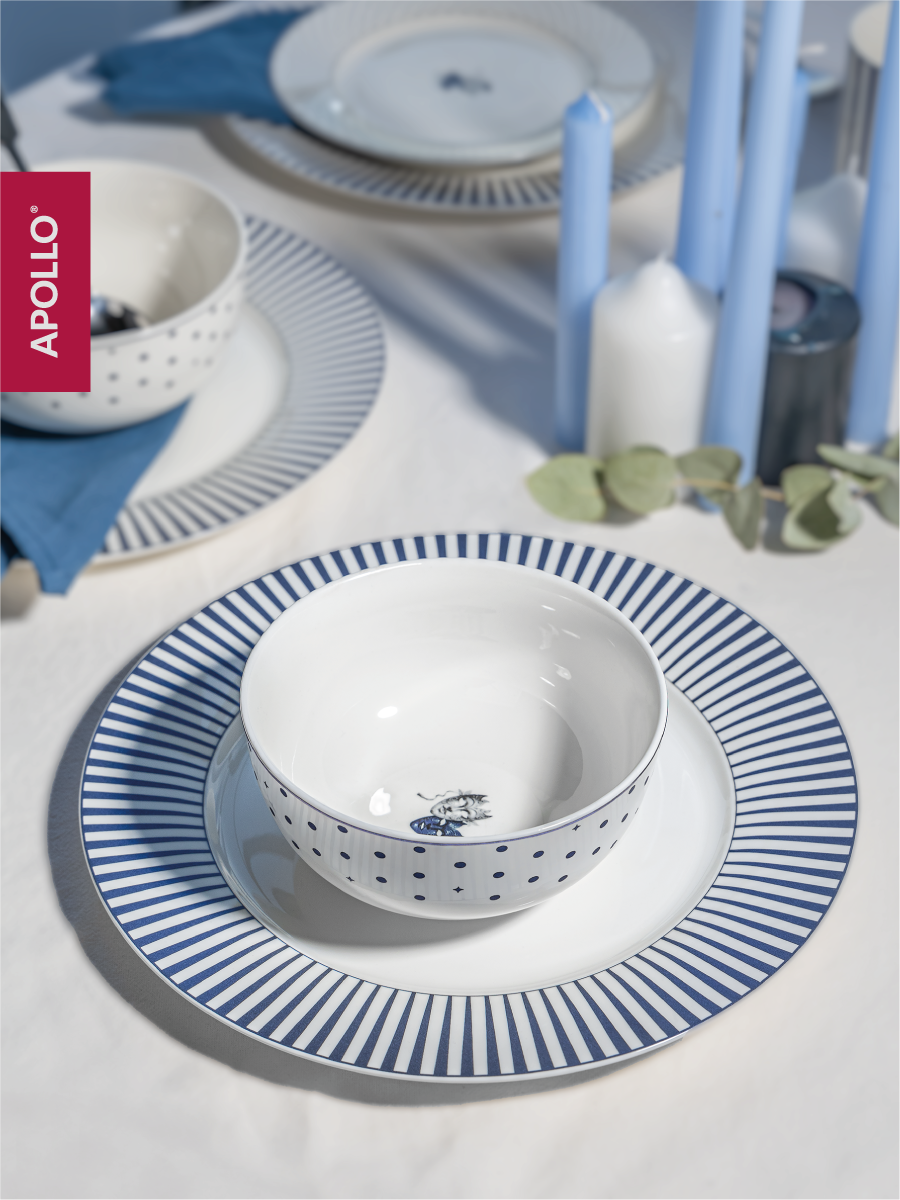 Сервиз Apollo 16 предметов изготовлен из высокоплотного костяного фарфора, прошедшего двойной обжиг при 1400°C. При лабораторных испытаниях материал показал: