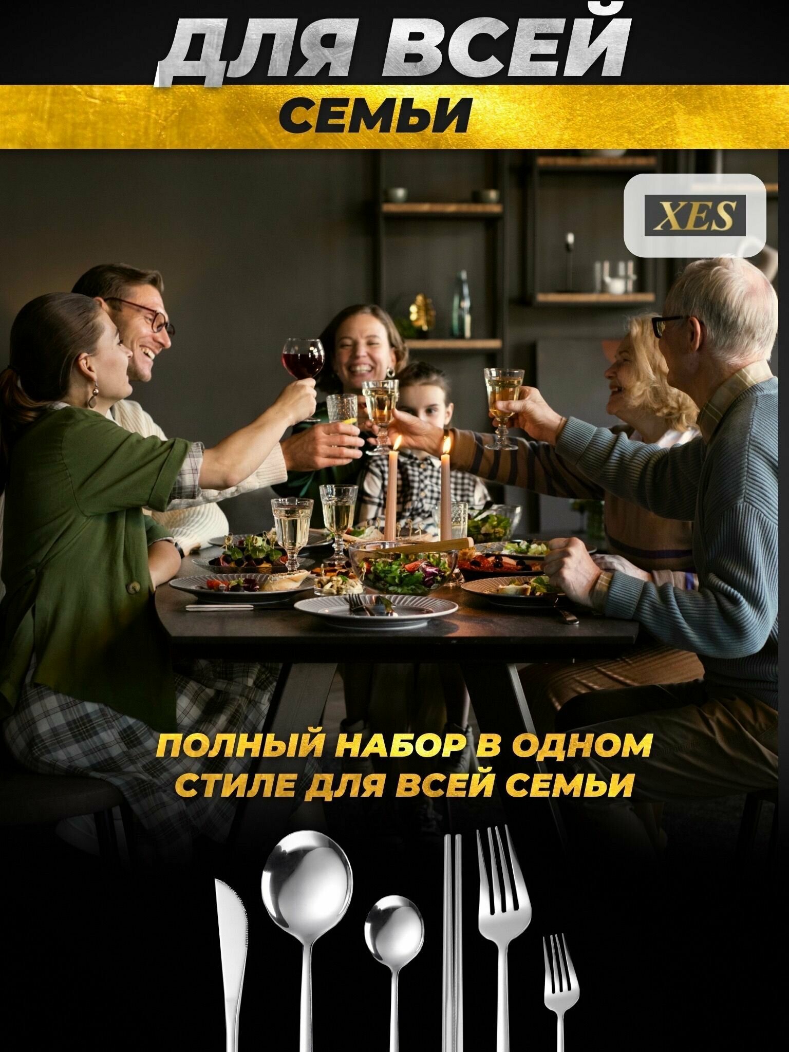 Набор столовых приборов из 36 предметов на 6 персон - это идеальное решение для рестораторов и хозяйств, ценящих безупречный сервис. Изготовлен из нержавеющей стали марки 18/10, известной своей устойчивостью к коррозии и способностью сохранять первозданный вид даже после 1000 циклов мойки в посудомоечной машине.