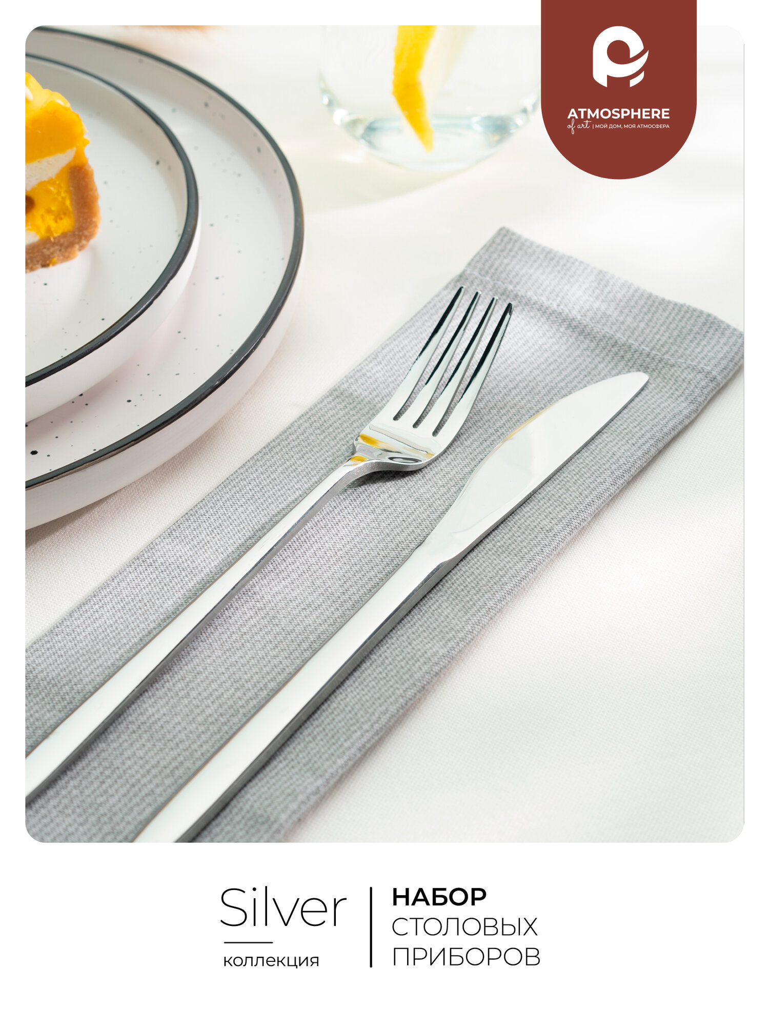 Линия Atmosphere of Art Silver создавалась при участии дизайнера столовой посуды для ресторанов Мишлен. Особенности: