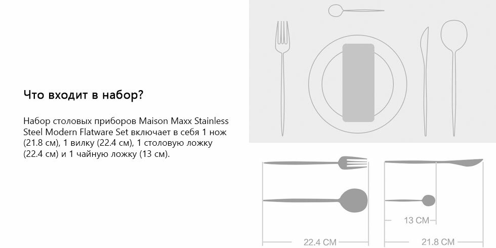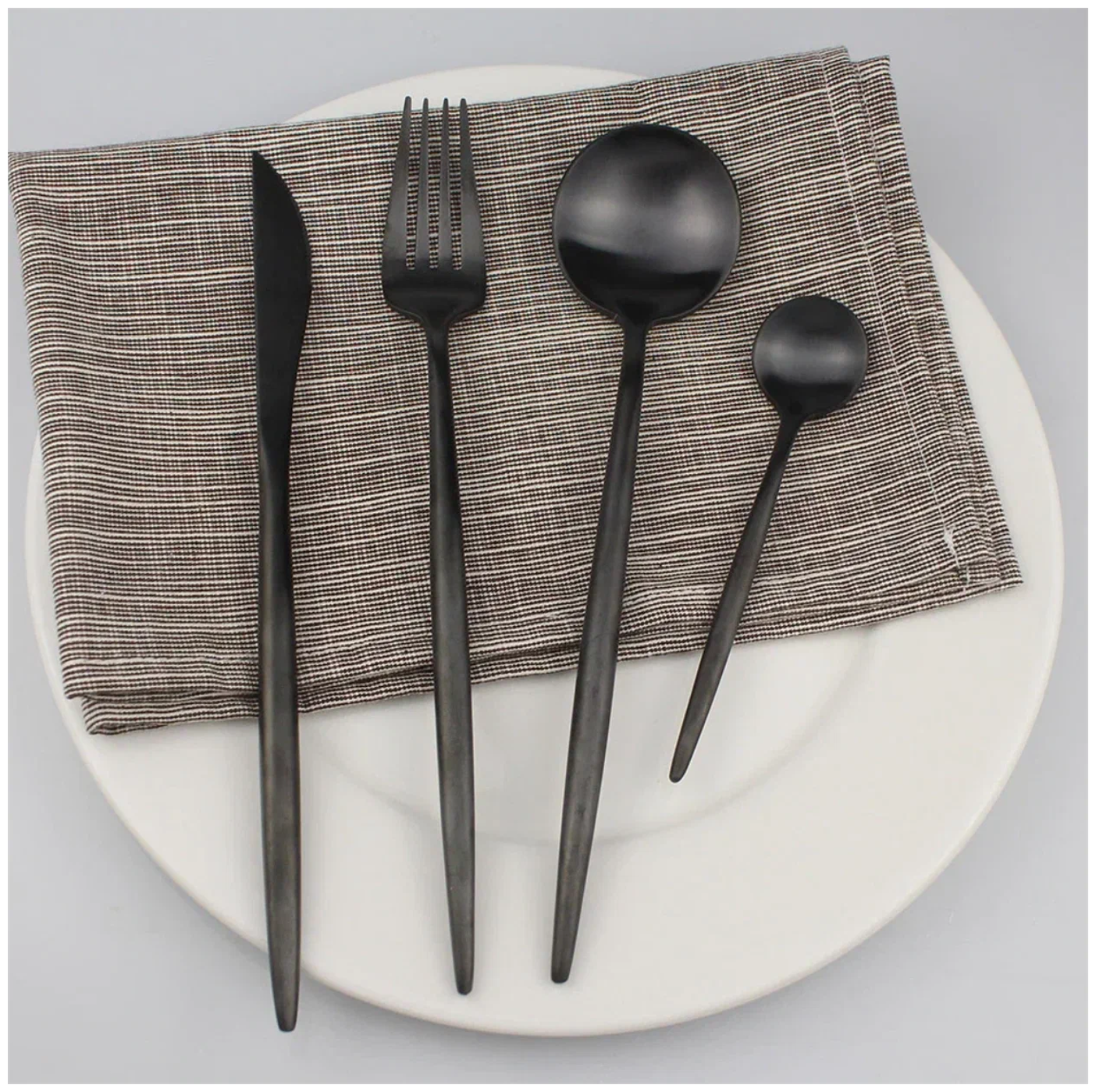 Набор Maison Maxx Stainless Steel Modern Flatware Set (Black) создан из высокоуглеродистой стали марки 18/10 с методами иммерсионного окрашивания. Покрытие толщиной 2.8 микрона обеспечивает: