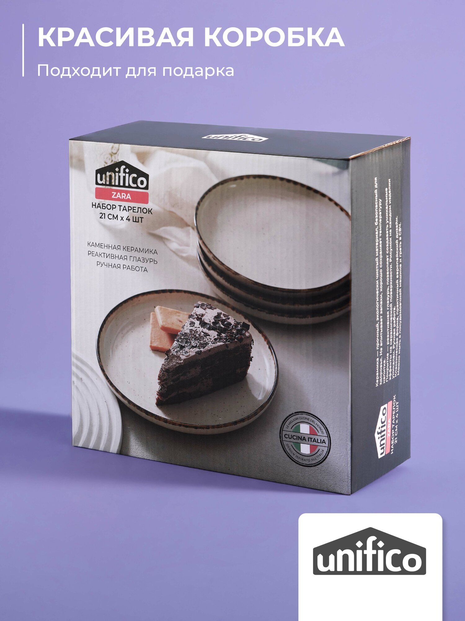 Набор керамических тарелок Zara UNIFICO сочетает испанский дизайн с технологичными решениями для современной кухни. Четыре предмета диаметром 21 см подходят для порционных блюд, десертов и закусок. Благодаря специальному составу глиняной массы изделия отличаются устойчивостью к перепадам температур до 240°C — вы смело можете разогревать пищу в микроволновке без риска появления трещин.