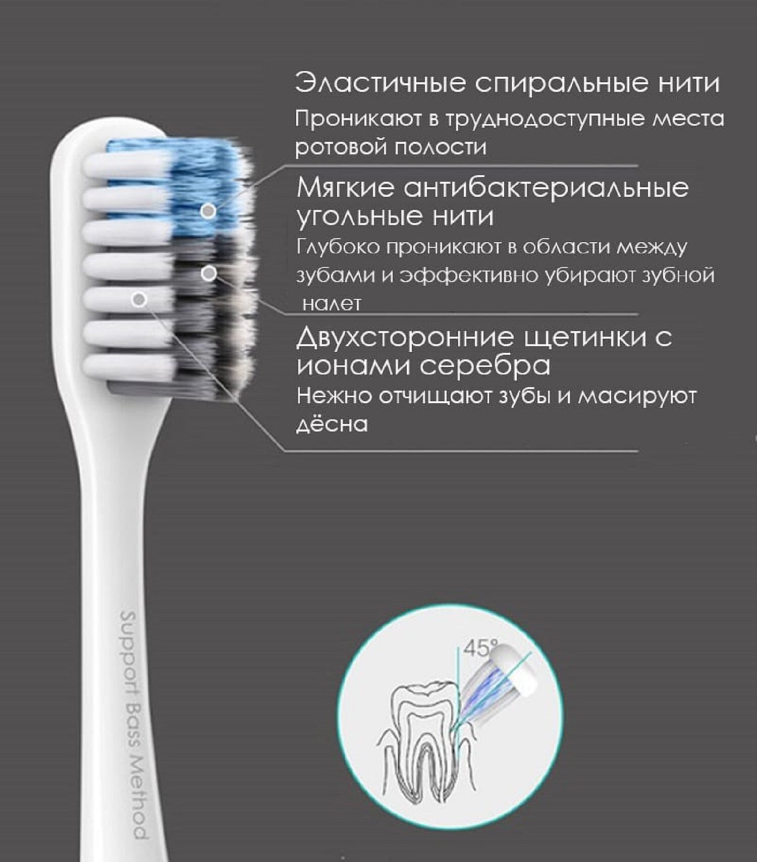 - Технология Bass Method: клинически подтвержденная эффективность для очистки придесневой зоны и межзубных промежутков (на 37% лучше классических щеток по тестам Dental Tribune).