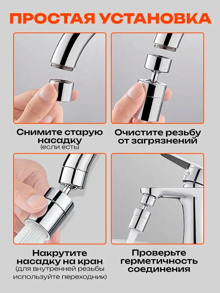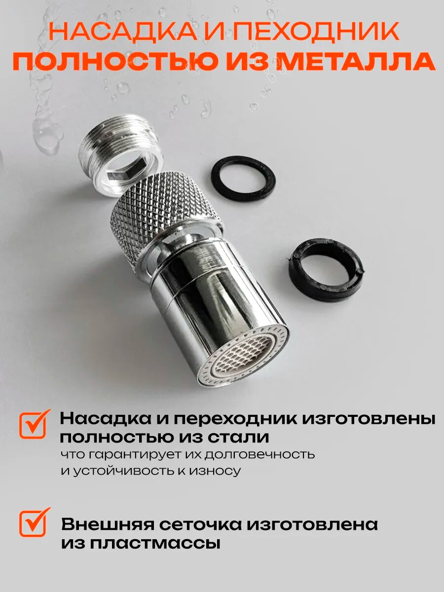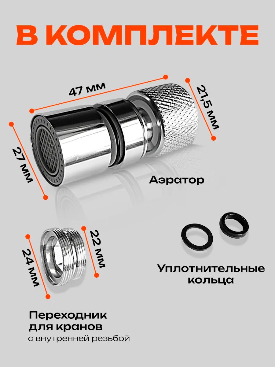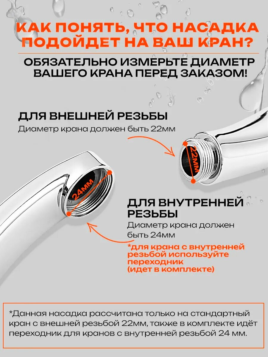 - Универсальное крепление – подходит для кранов с резьбой 22 мм (стандарт M24×1) и 24 мм