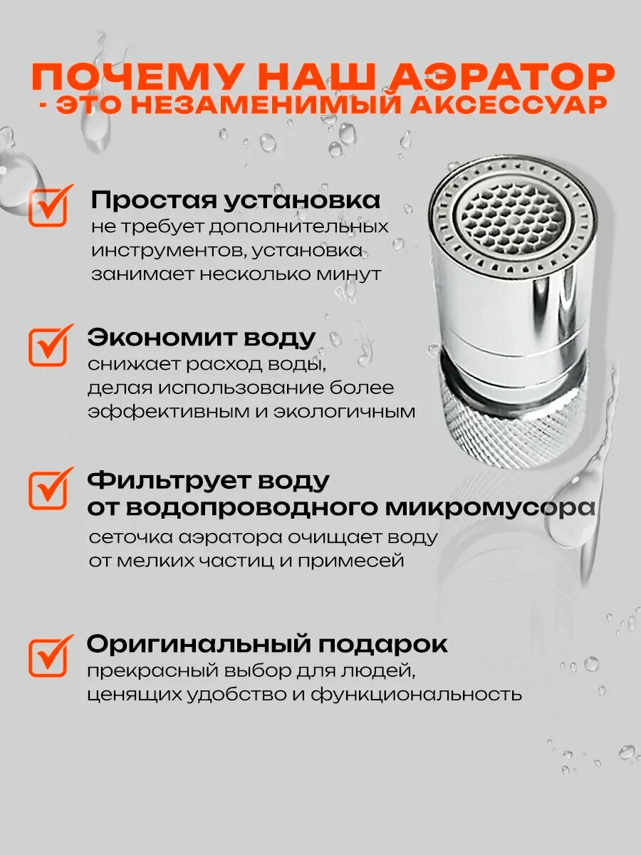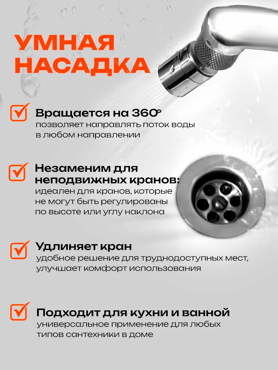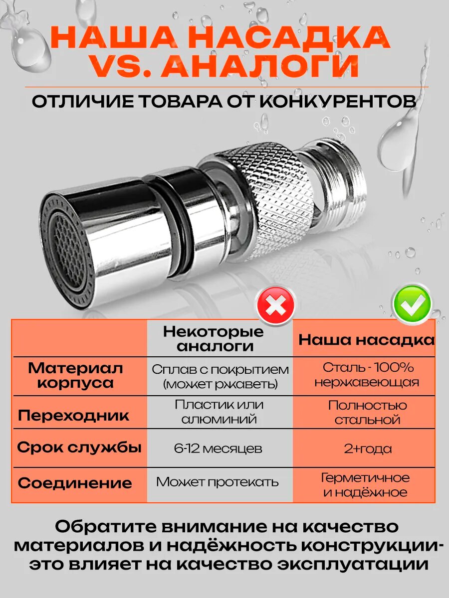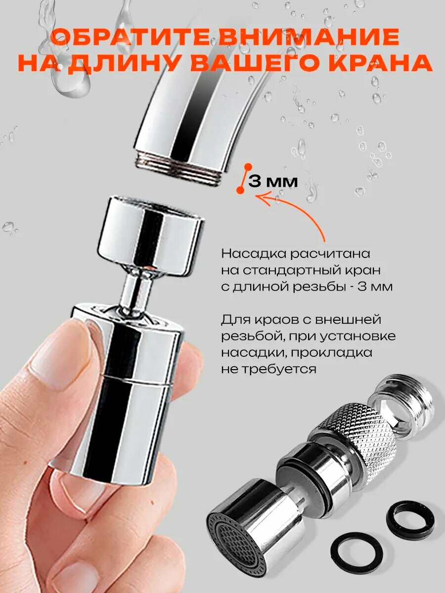 - Универсальное крепление – подходит для кранов с резьбой 22 мм (стандарт M24×1) и 24 мм
